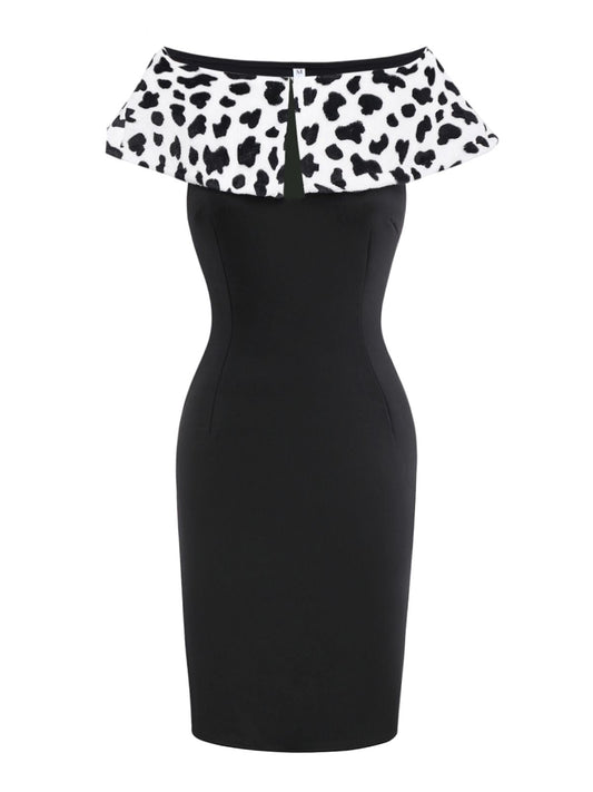 2PCS White & Black 1960s Cruella Dalmatian Dress & Cape