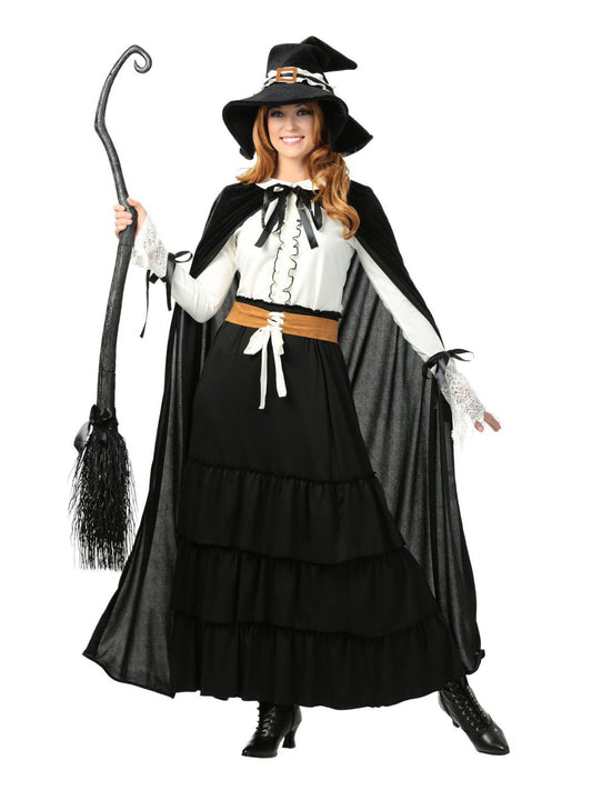 2PCS Black 1950s Halloween Witch Lace Ruffled Blouse & Skirt