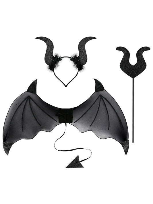 Black 1930s Halloween Maleficent Batwing Sleeve Dress Set