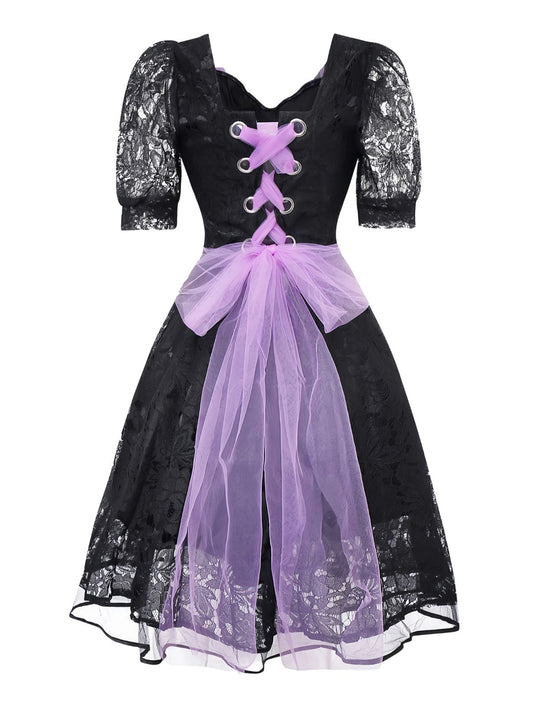 Black 1950s Gothic Witch Bride Lace Embroidered Dress
