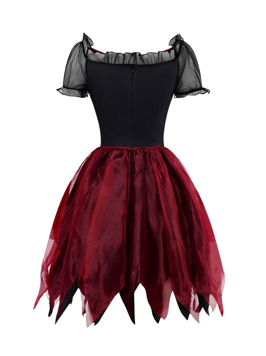 Red 1950s Halloween Ghost Bride Dots Dress Set