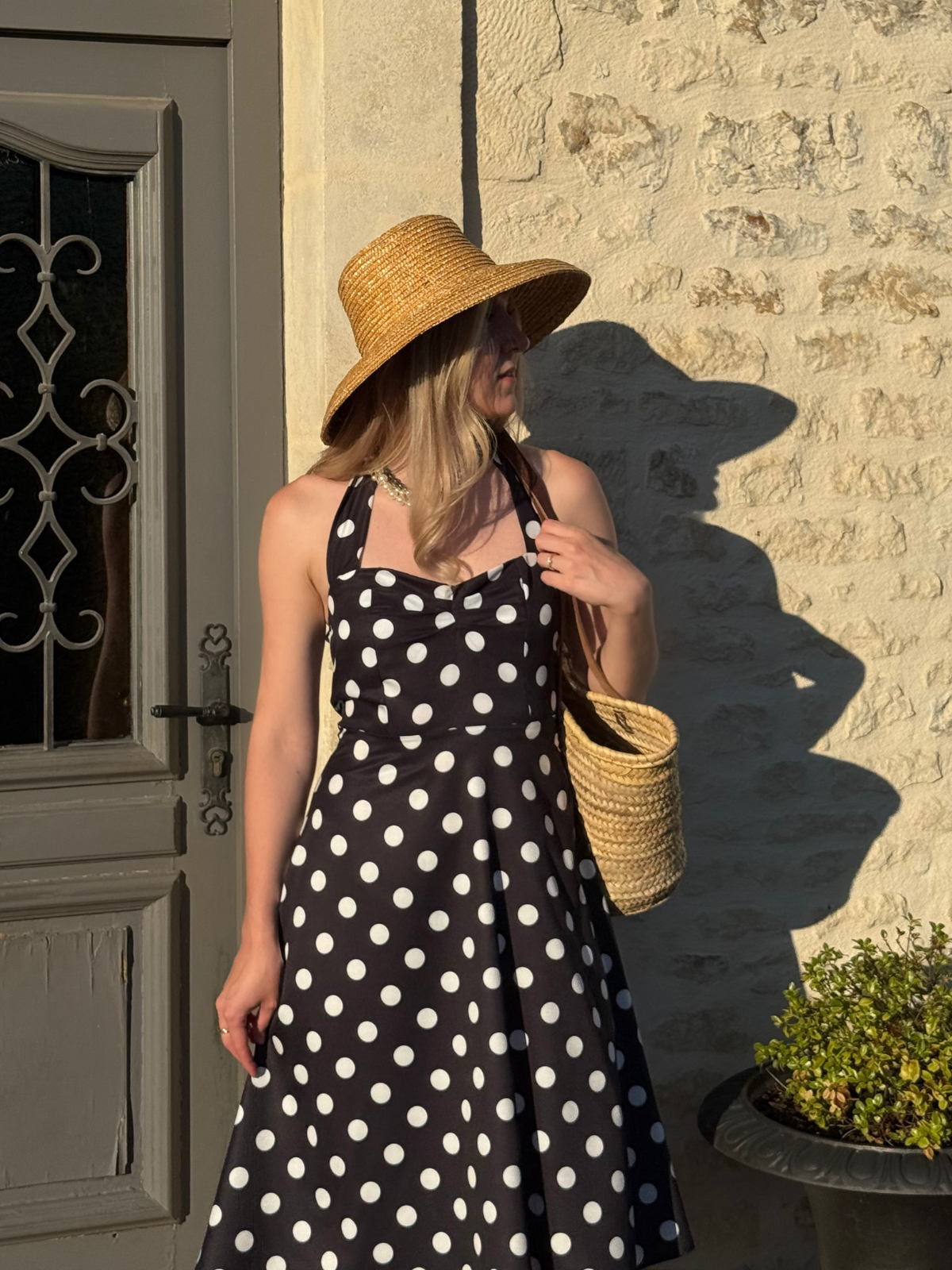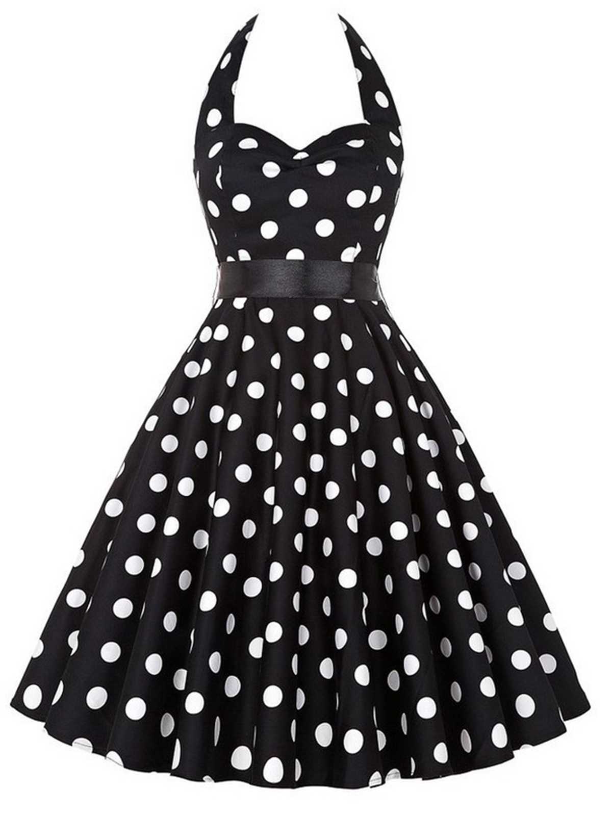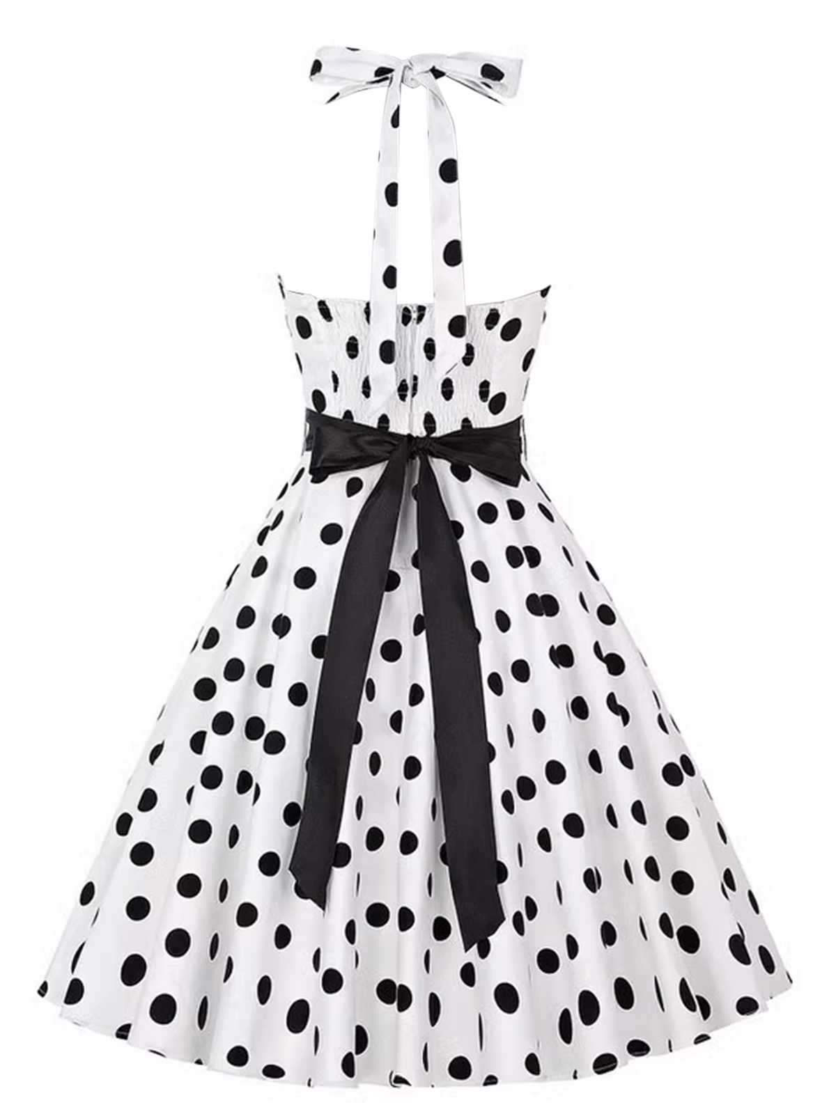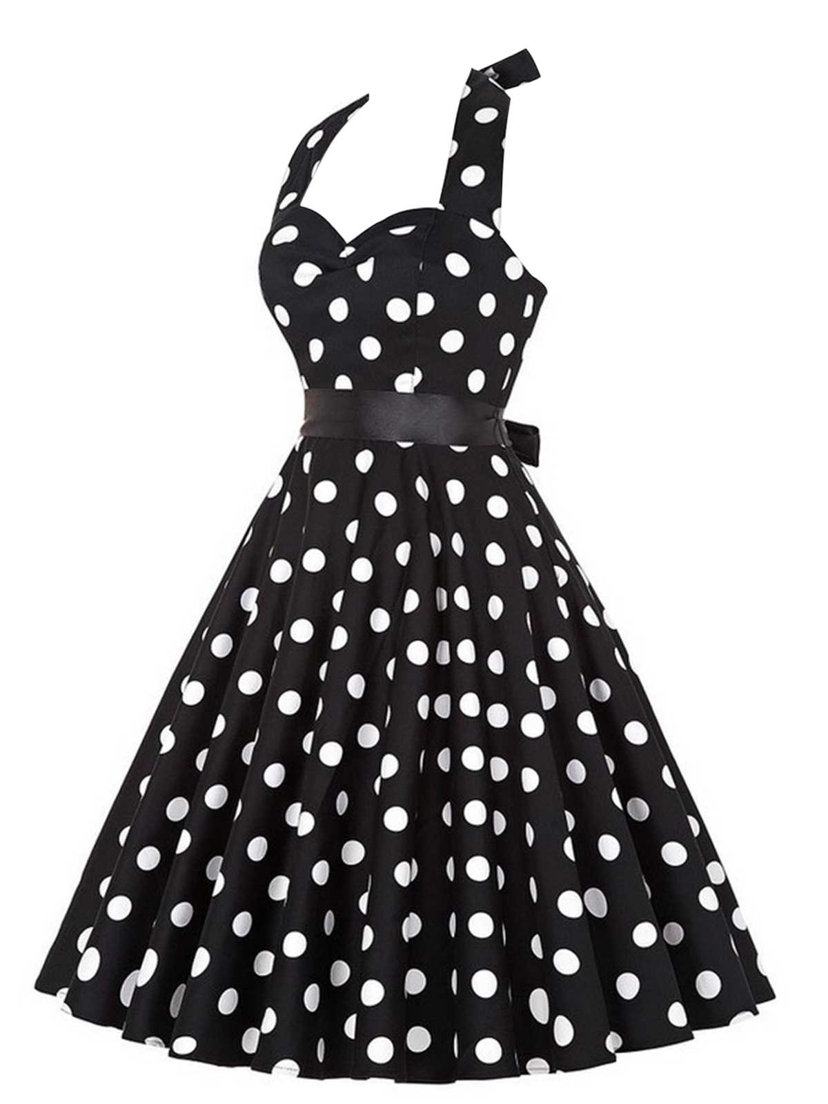 1950s Halter Contrast Polka Dots Belted Dress