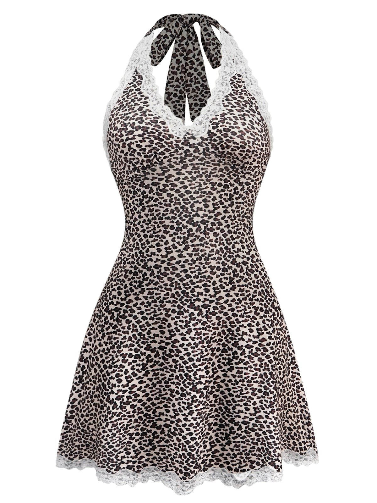 1960s Leopard Print Lace Trim Halter Nightgown