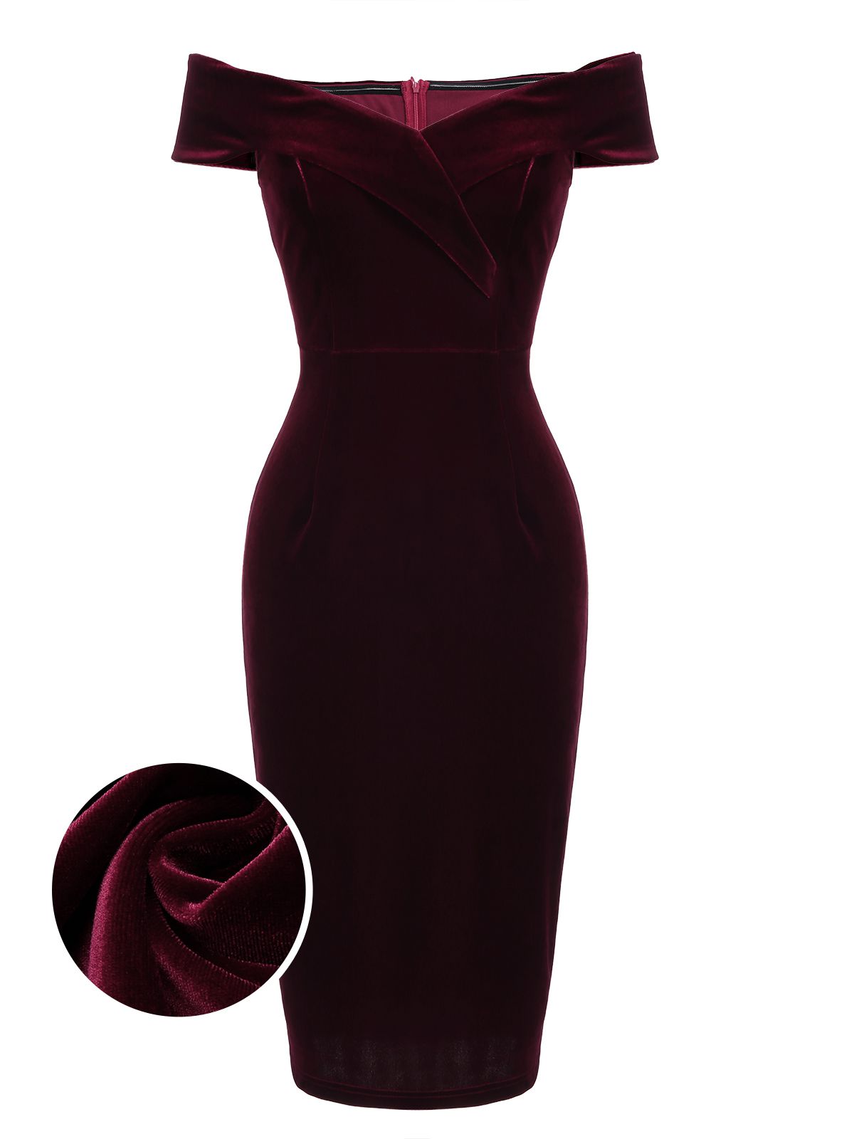 Be remembered, darling! Flatter your figure and charm the room in this retro beauty that flaunts an off-shoulder neckline design, with a joy to wear thanks to the smooth and stretchy feeling of velvet with wine red color. Still their hearts, darling!