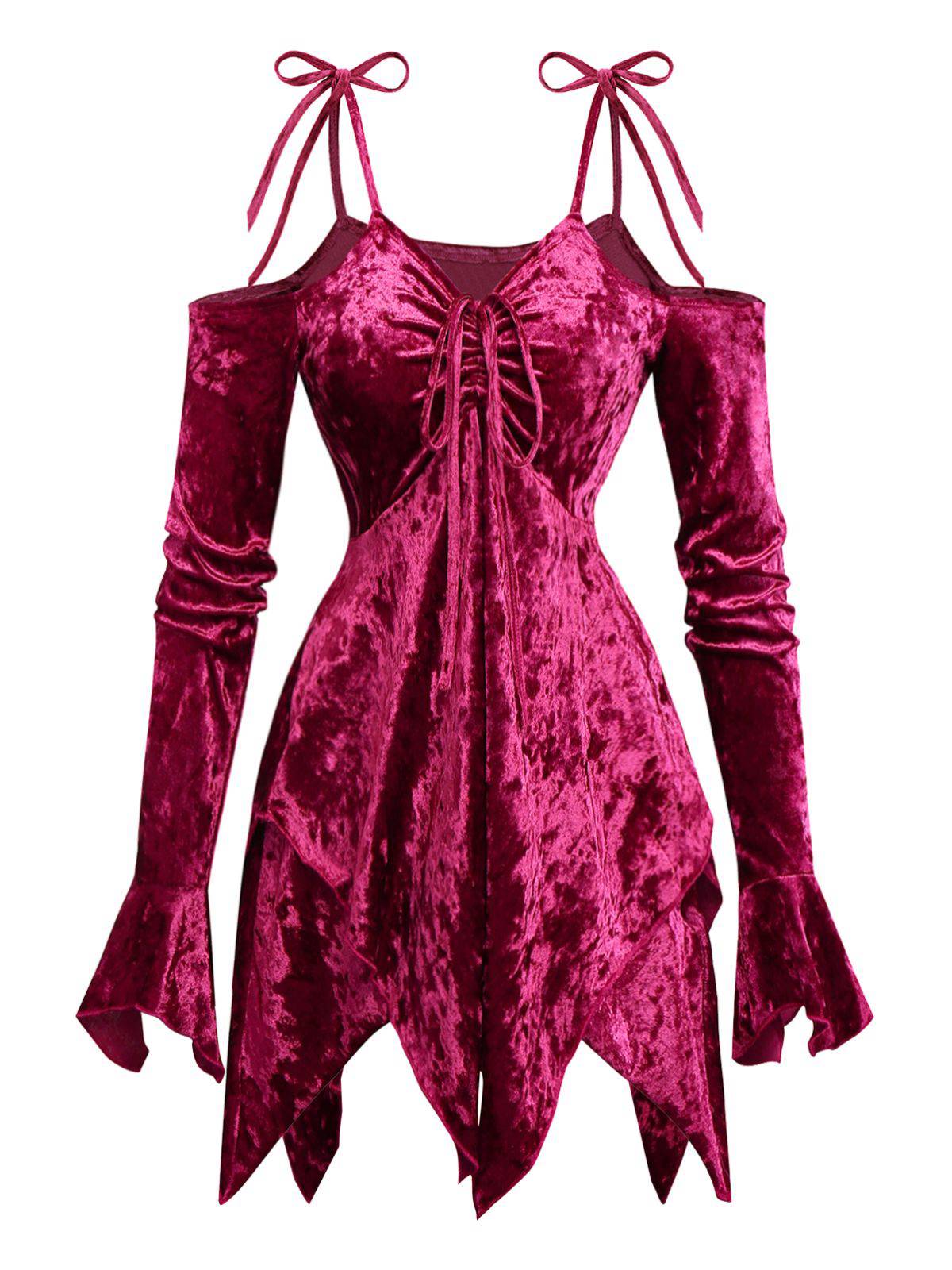 1960s Velvet Batwing Sleeve Irregular Hem Dress