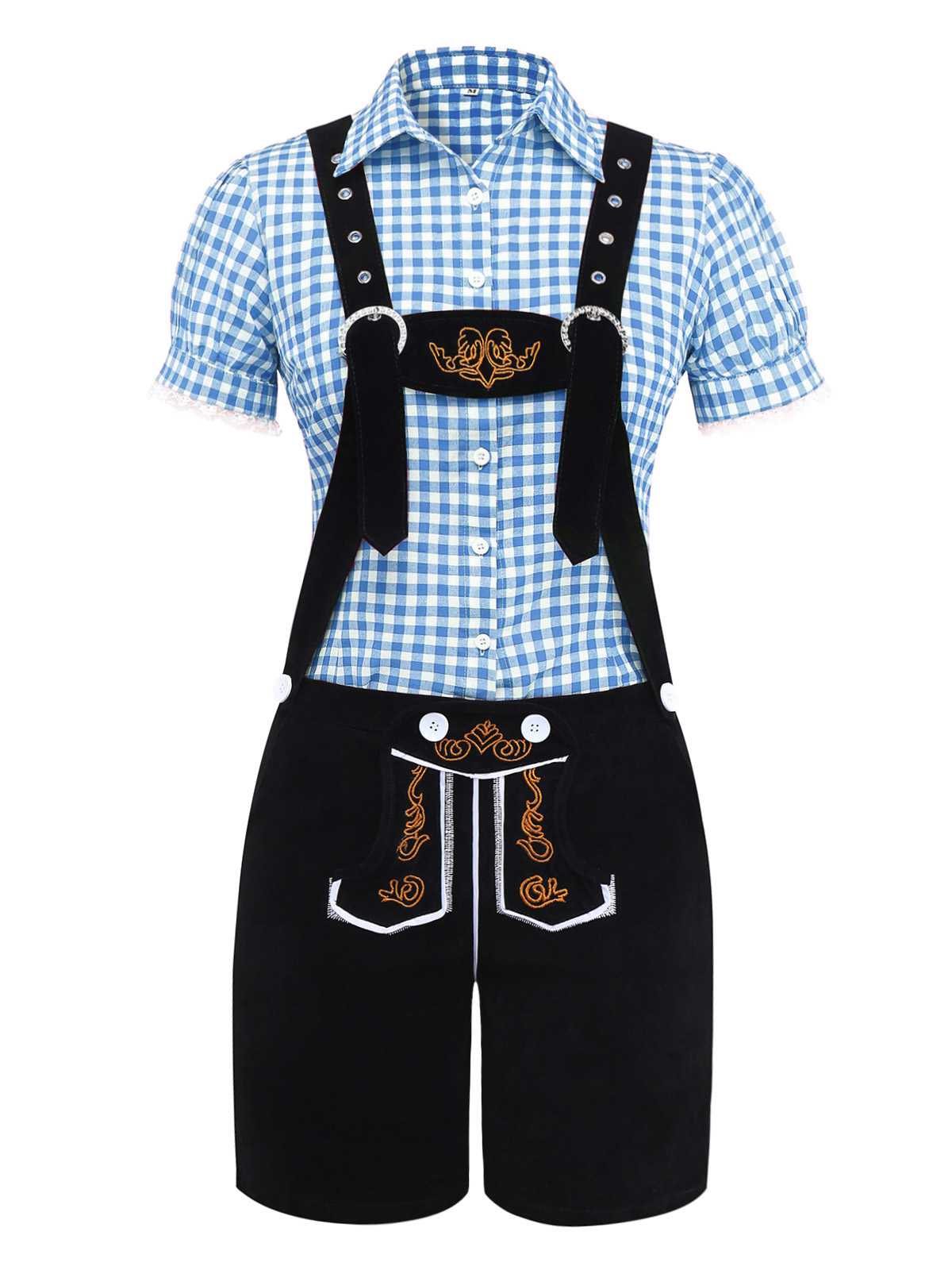 2PCS 1960s Oktoberfest Costume Plaids Blouse & Shorts