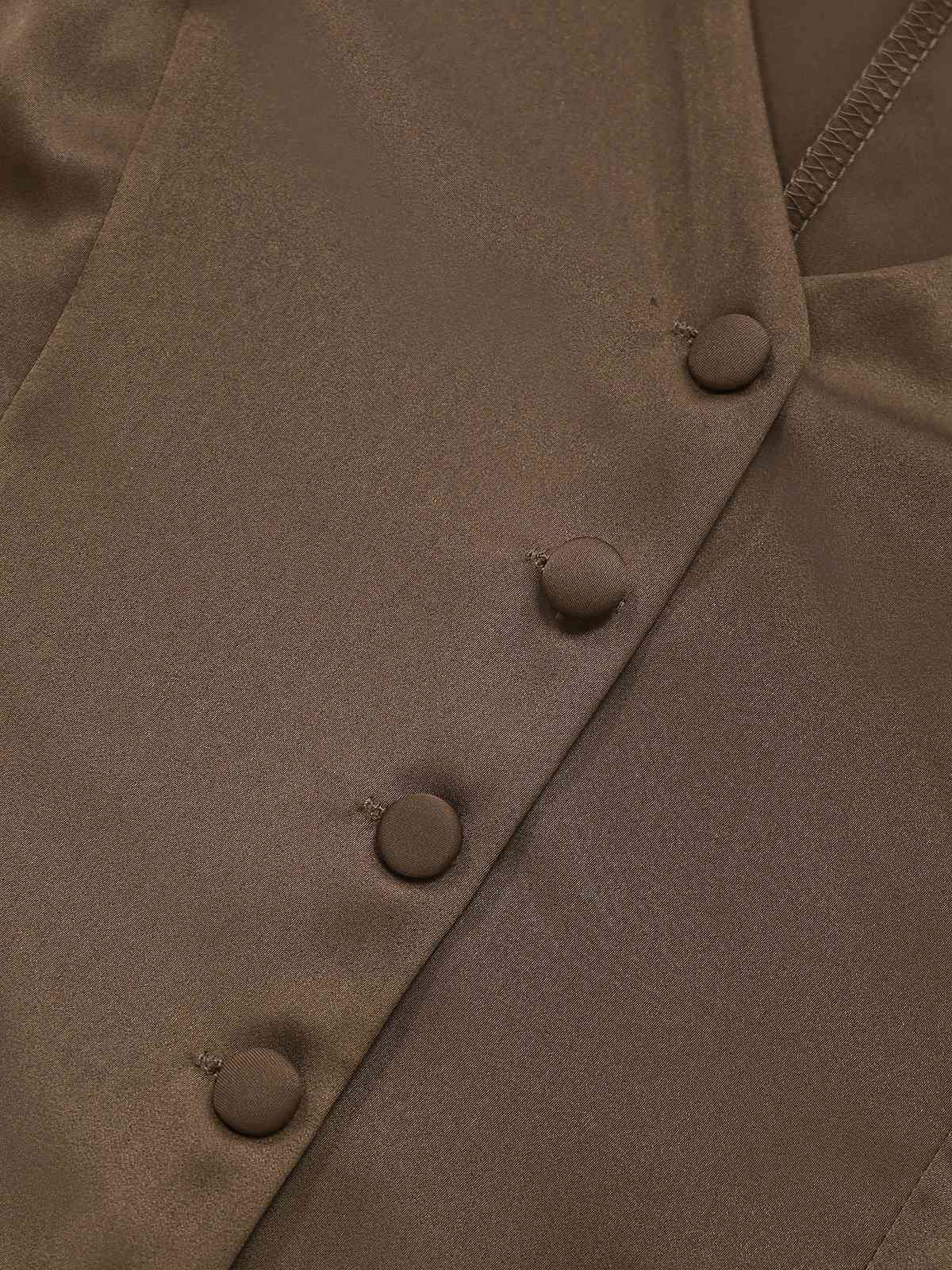 2PCS Brown 1930s Solid Satin Sleeveless V-Neck Vest & Fishtail Skirt
