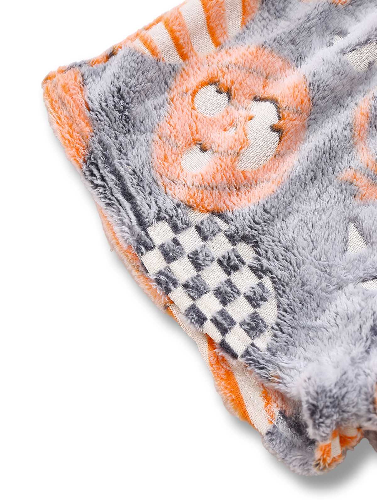2PCS Grey 1970s Glowing Halloween Pumpkin Flannel Pajama Set