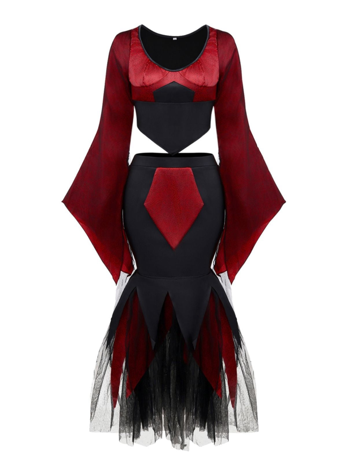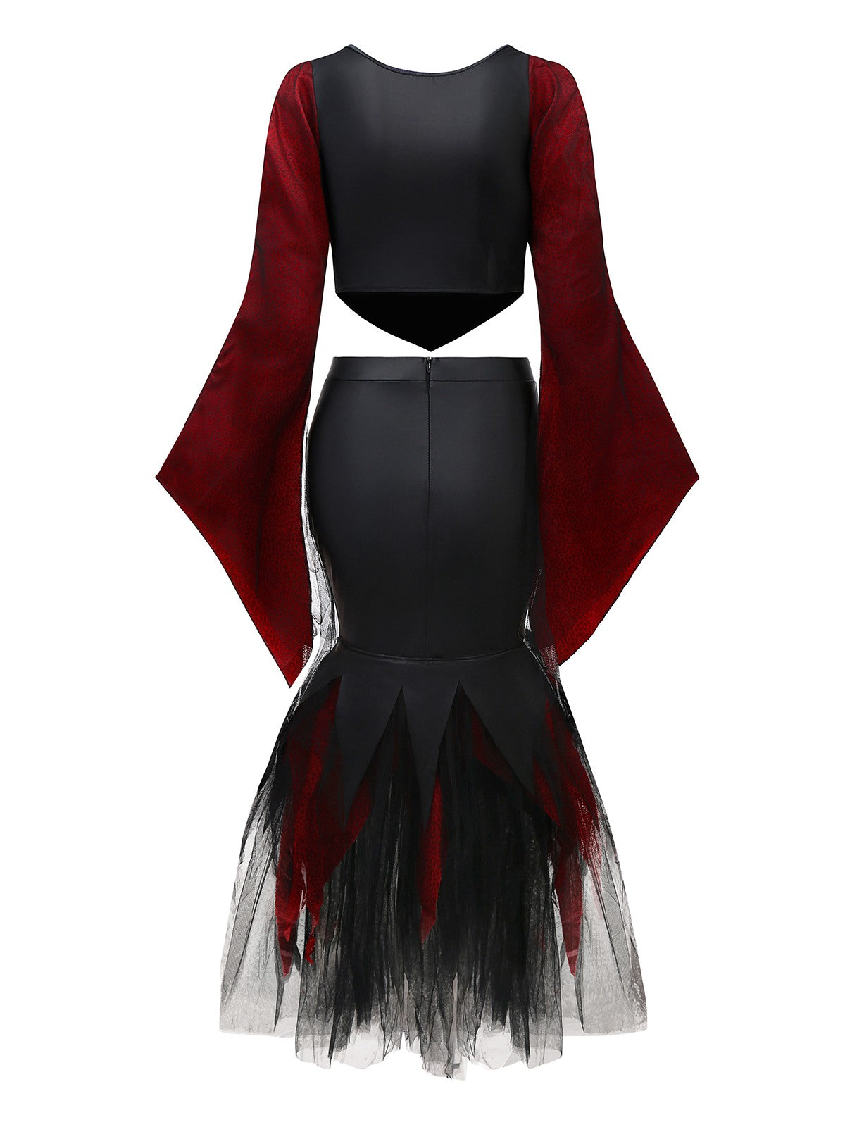 2PCS Red 1930s Wicked Cheetah Mesh Top & Mermaid Skirt