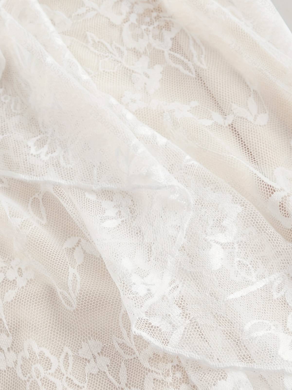 Beige 1940s Bowknot Ruffled Floral Lace Dress