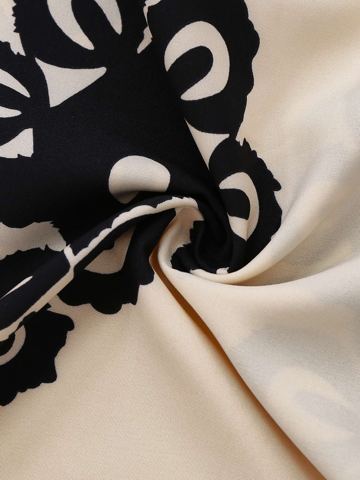 Beige 1970s Deep V-Neck Ethnic Print Jumpsuit