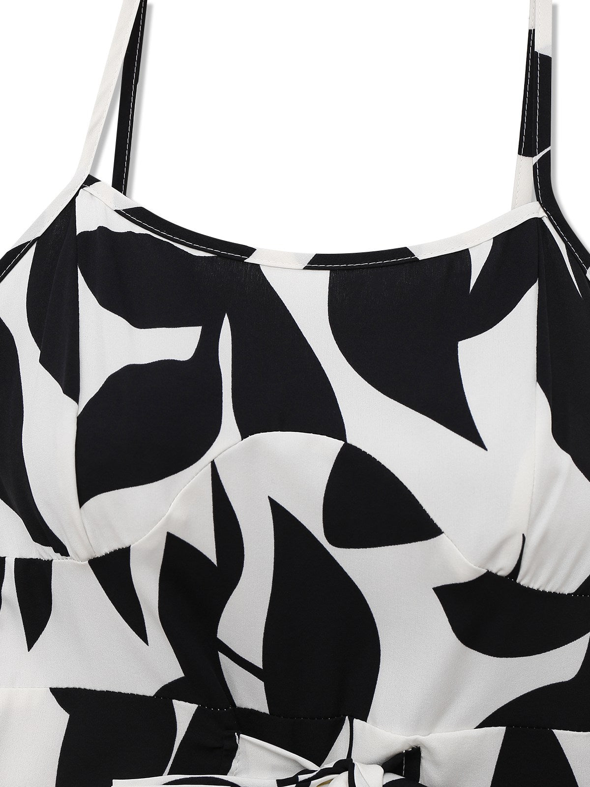 Black 1930s Leaf Silhouette Spaghetti Strap Jumpsuit