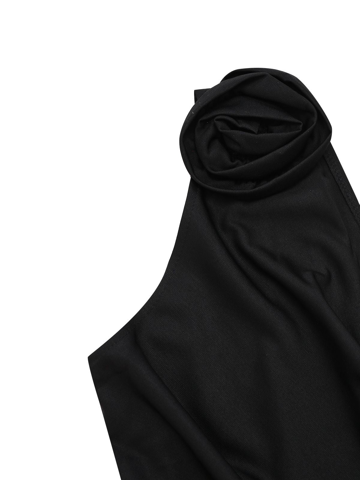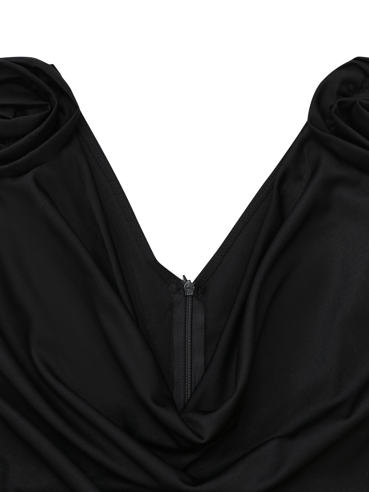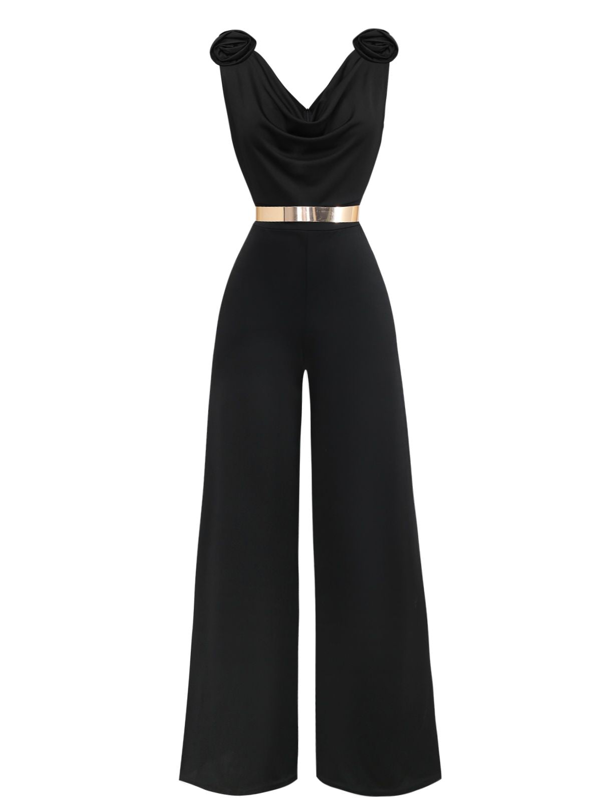 Black 1930s Sequined Belt Deep V-Neck Jumpsuit