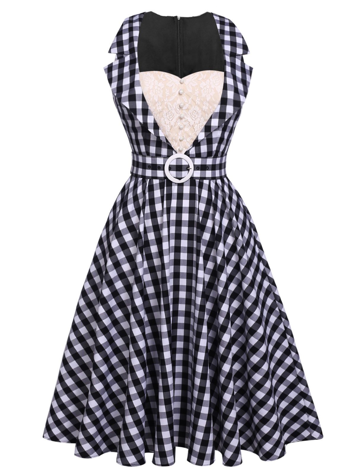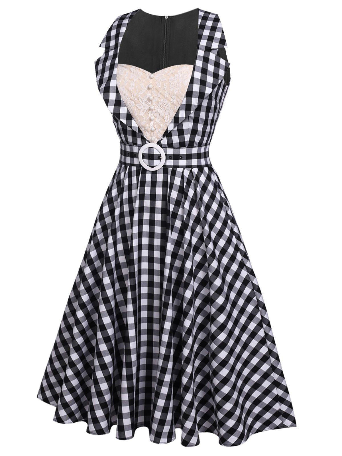 A sweet dress in fabulous 1950s vintage appeal fresh from Retro Stage. The dress is delightful in 1950s vintage appeal with a classic check pattern throughout a black backdrop, a pinpoint of vintage charm! A striking 1950s-inspired dress that's set to make a serious sartorial statement, where ever you choose to wear it.