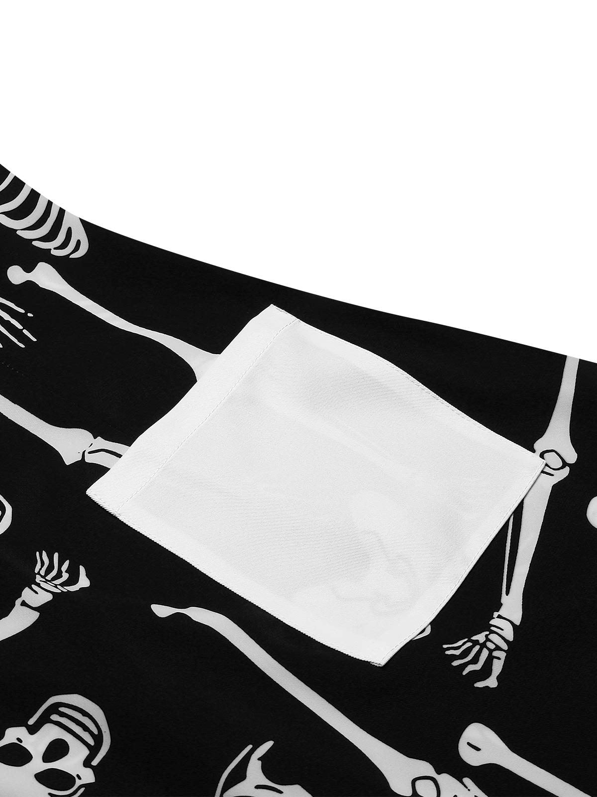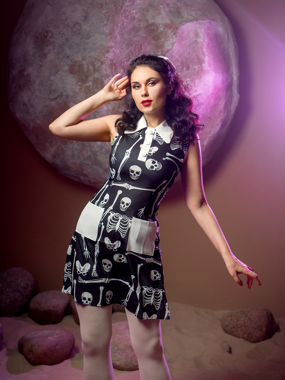 Black 1960s Halloween Skeleton Lapel Mod Dress