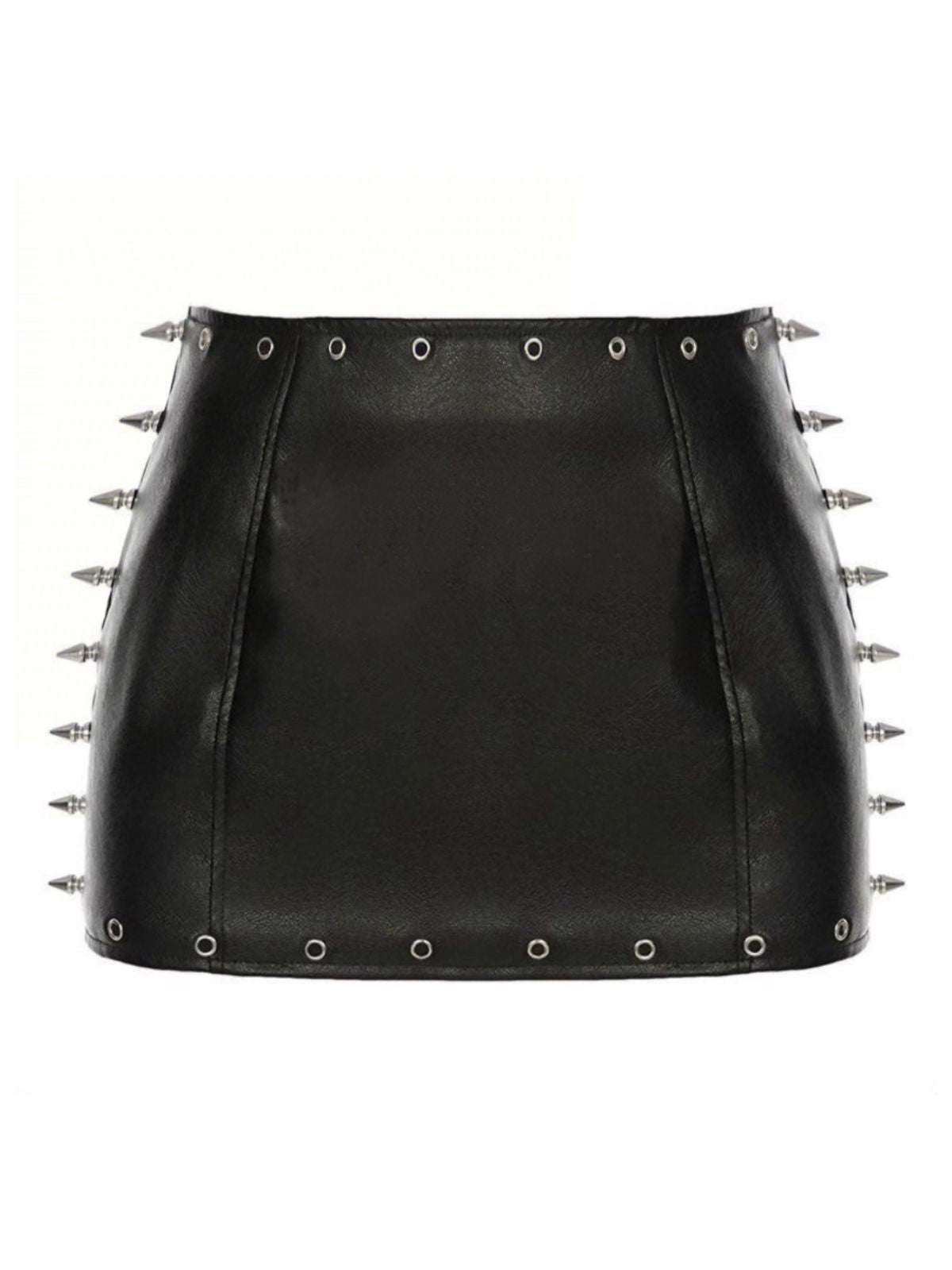 Black 1970s Gothic Punk Spike Leather Mini Skirt