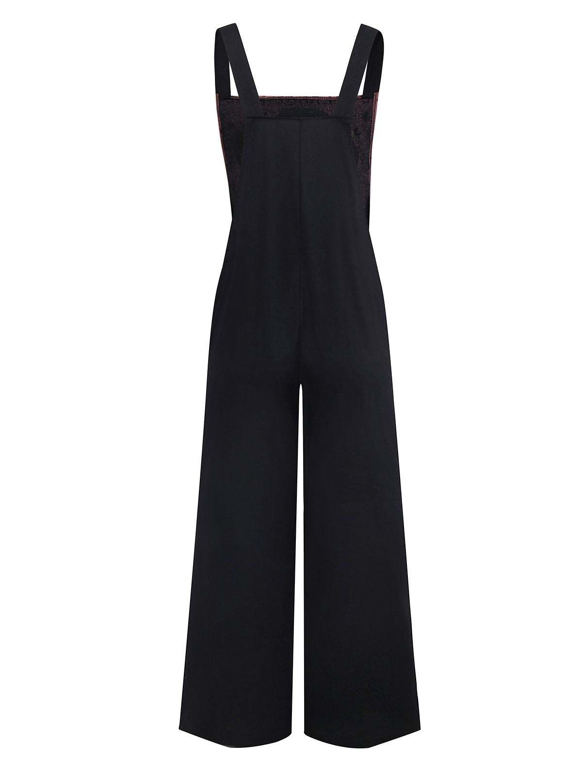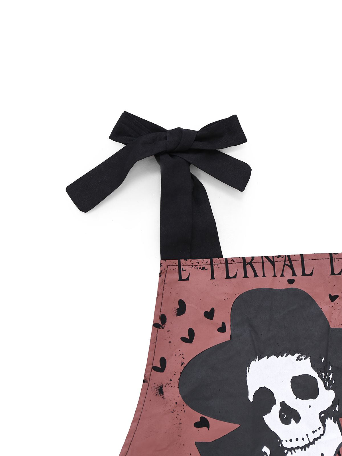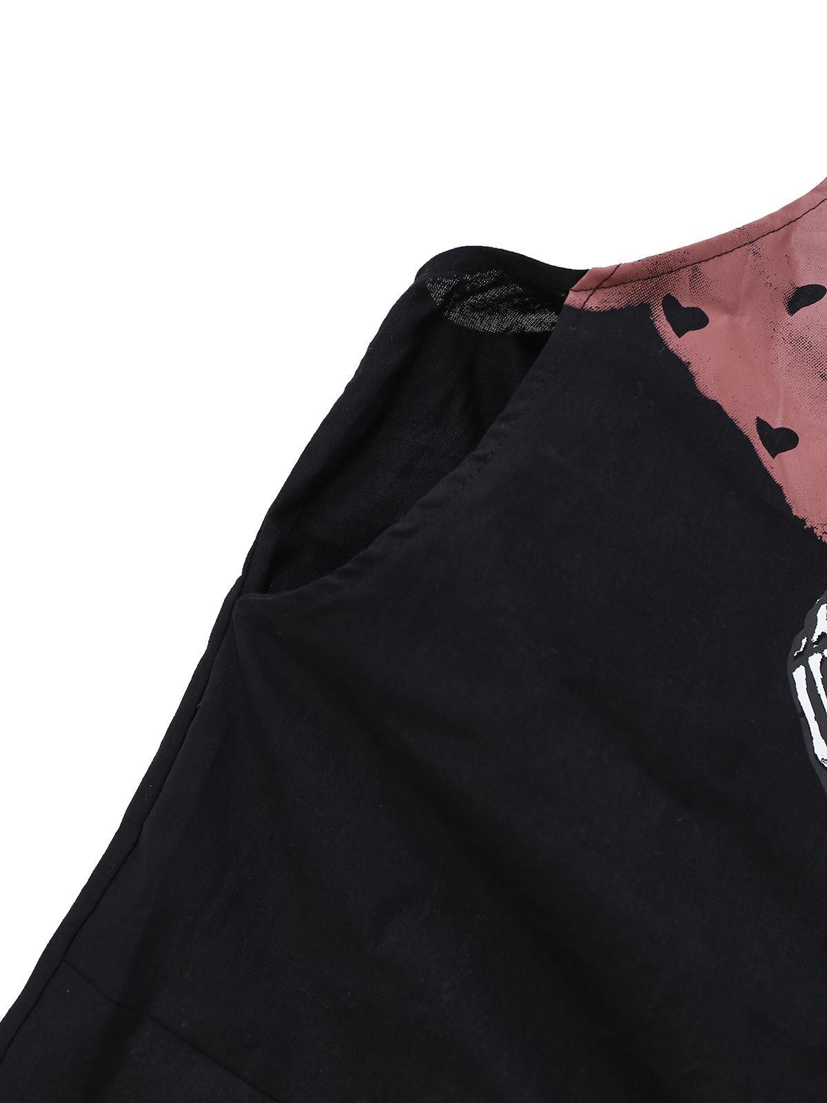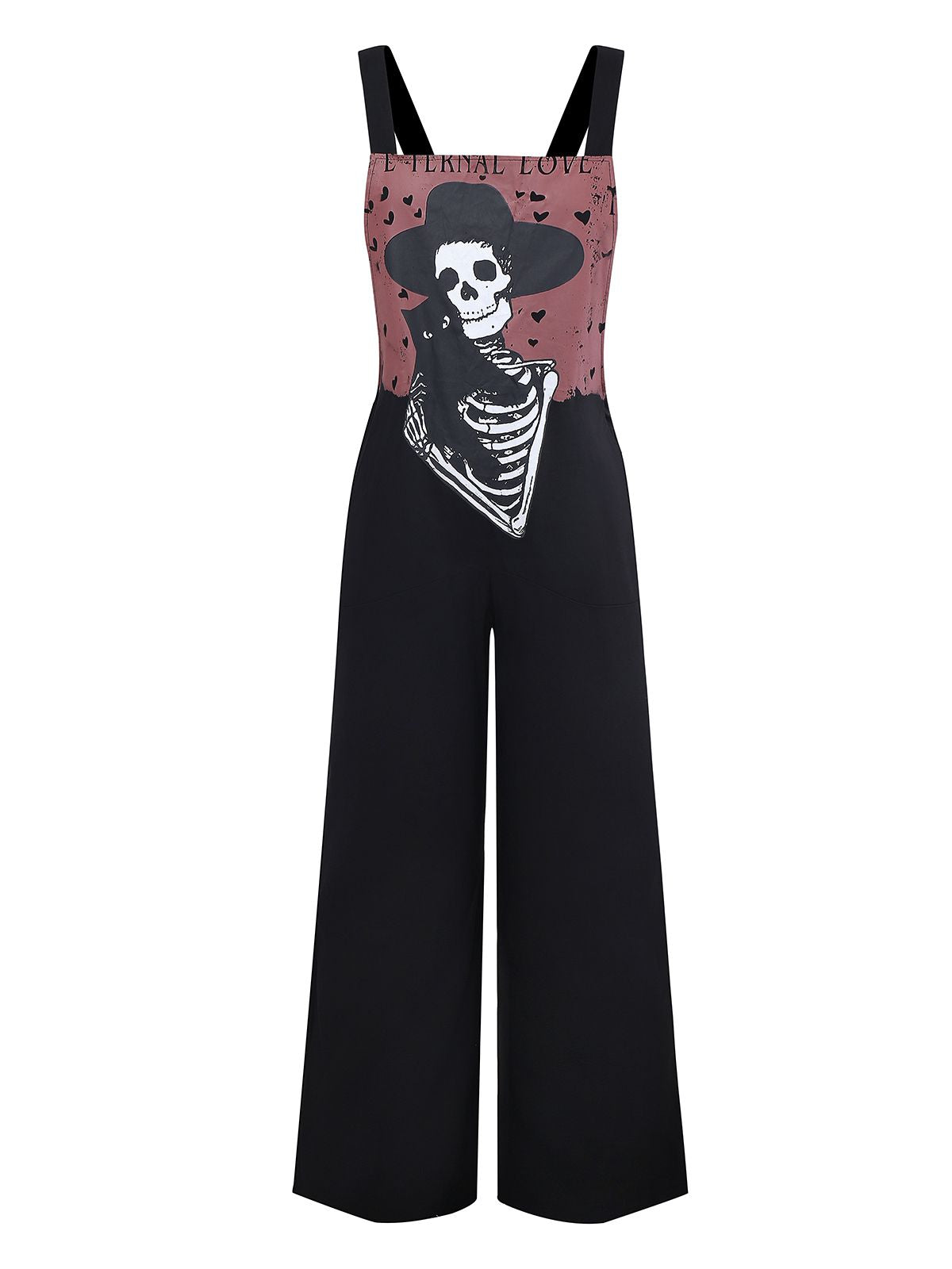 Black 1970s Halloween Gothic Skeleton Print Suspender Jumpsuit