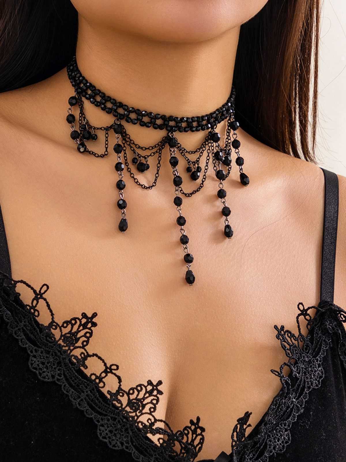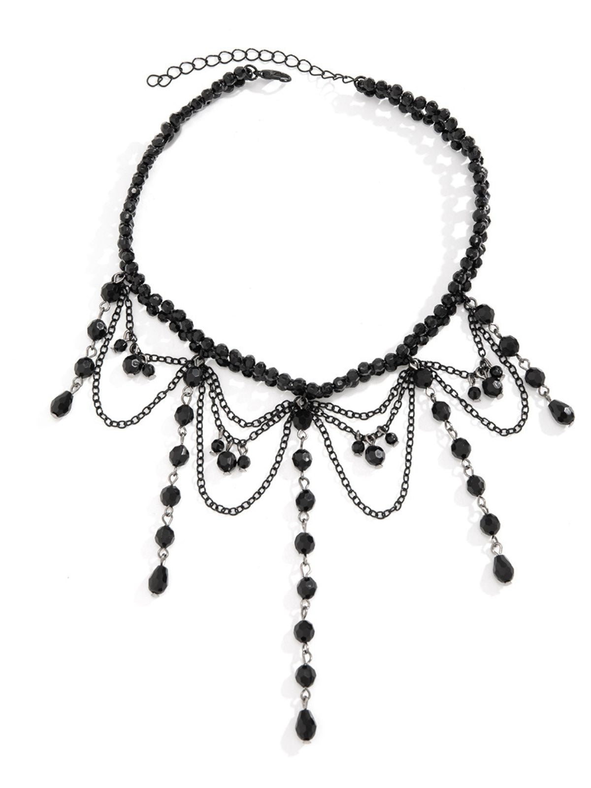Black Gothic Artificial Crystal Tassels Pendant Necklace