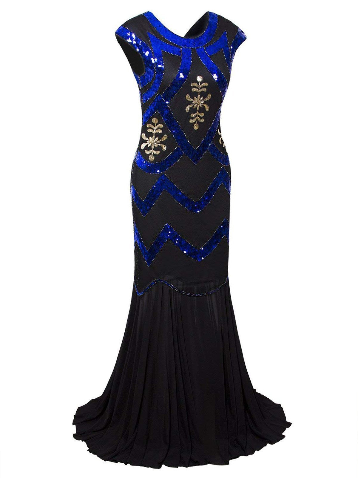 Feel like creating an atmosphere, darling? This stunning 1920s style frock from Retro Stage is a gorgeous deco affair in fabulous design. The cap sleeves and round neck design shows you off with a modest touch. An elegant 1920s dress in a lightweight black mesh with a subtle blue lining that creates a sweetheart bodice.