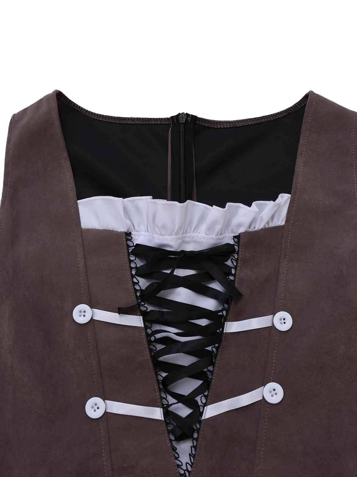 Brown 1960s Pirate Lace-Up Square-Neck Corset Dress