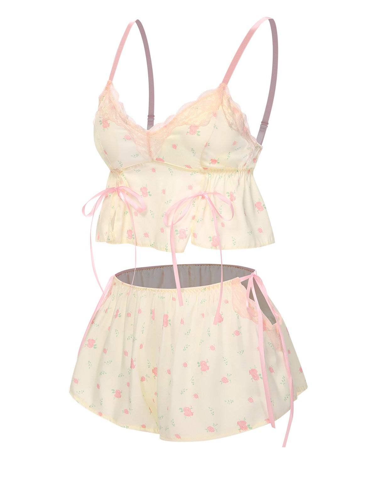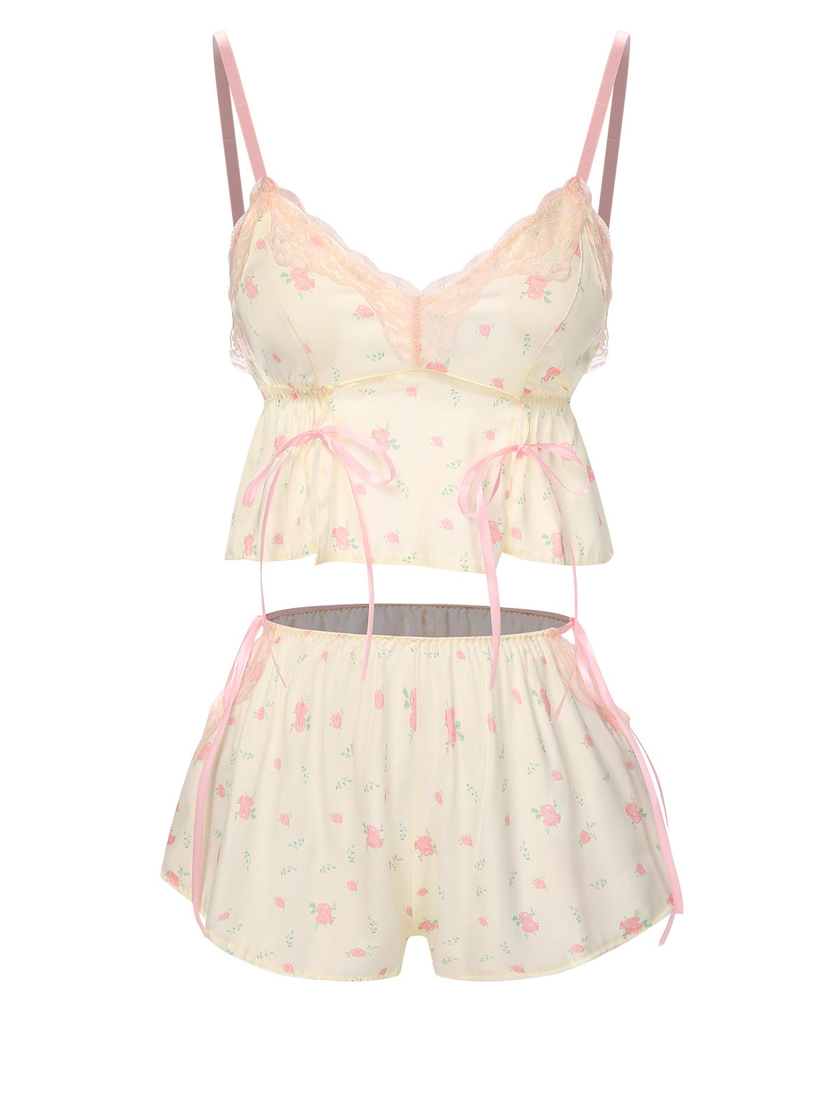 Cream Color 1950s Floral Lace Straps Pajama