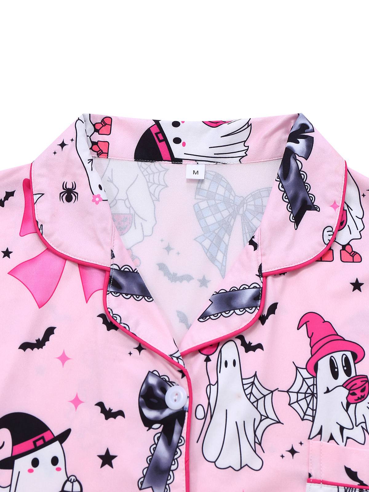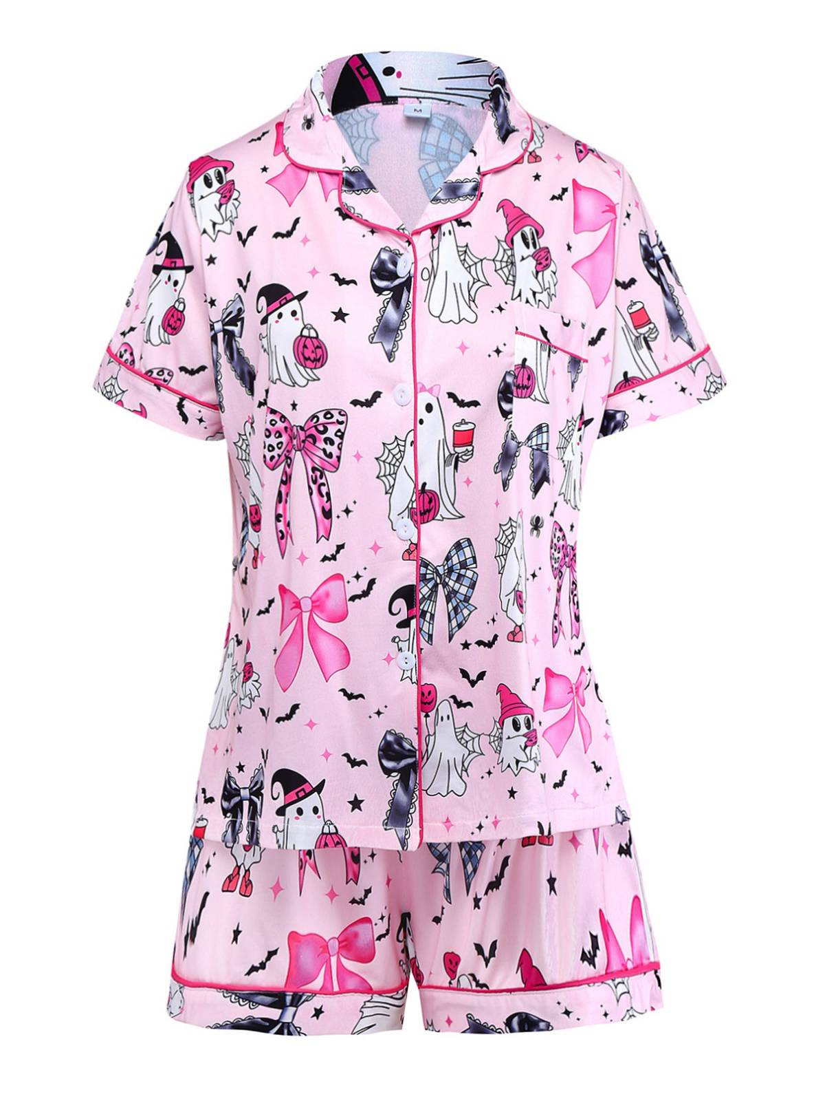 Dark Pink 1970s Halloween Boo Print Pajama Set