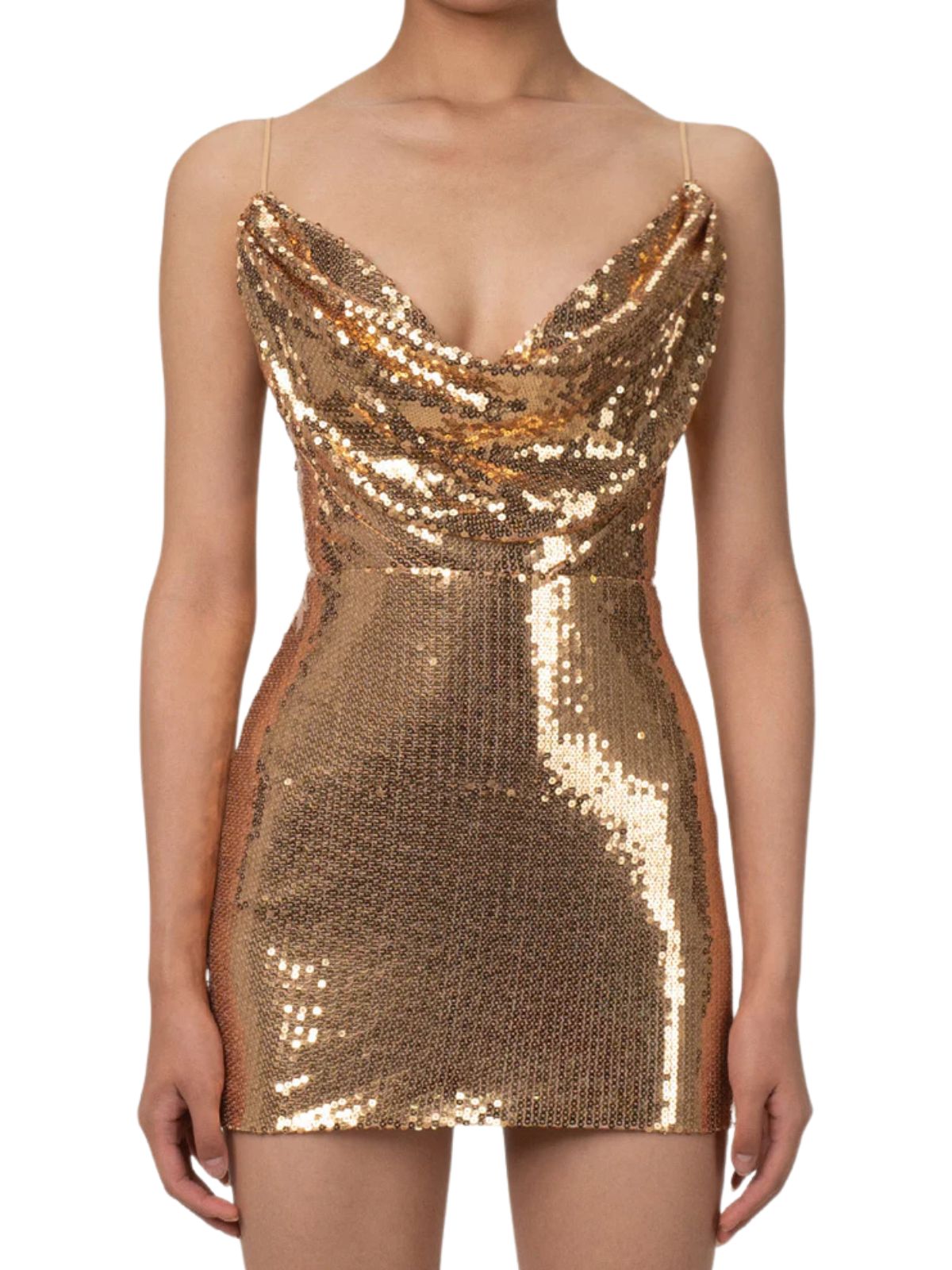 Gold 1970s Solid Sequined Mini Party Dress