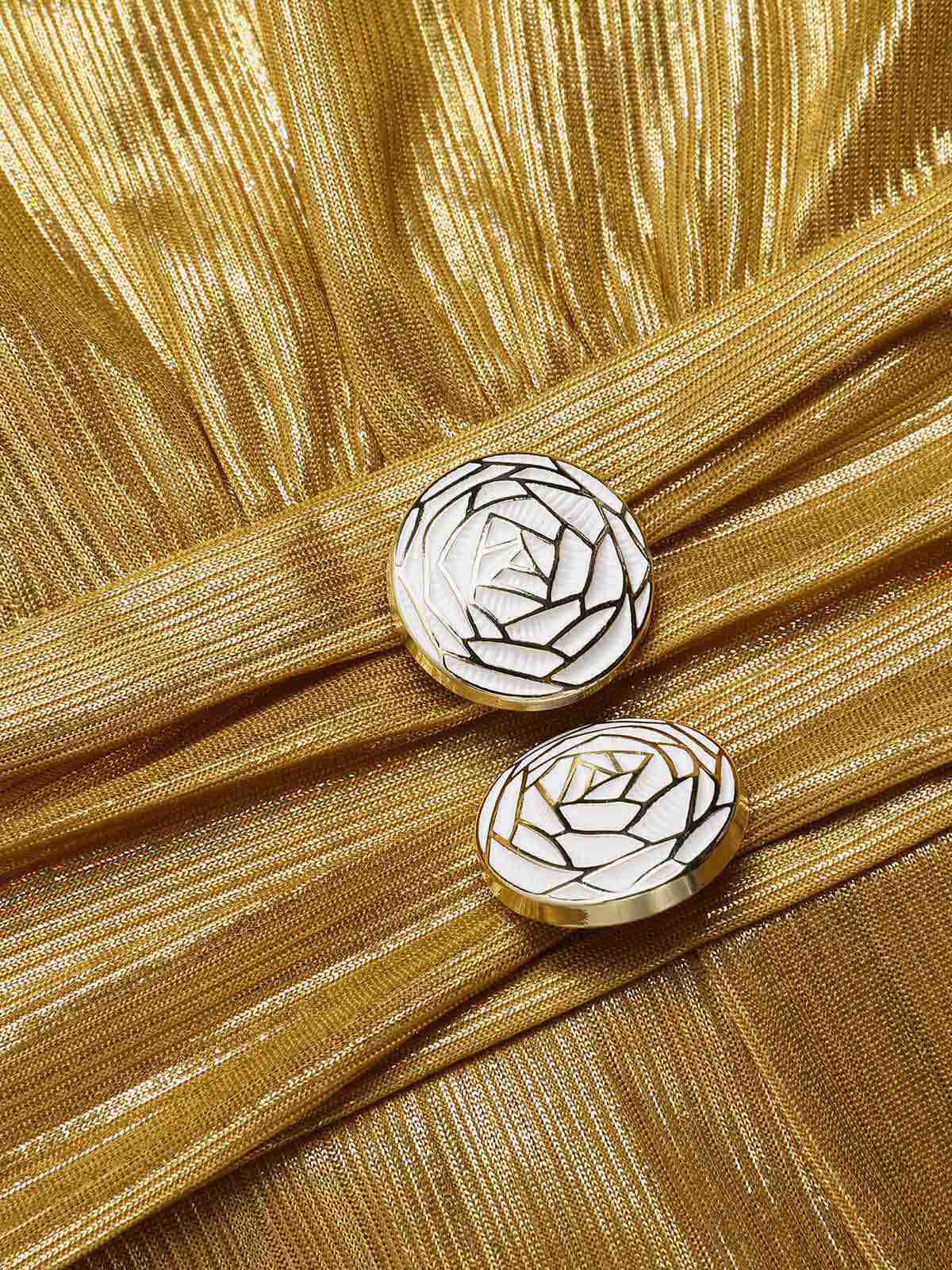Gold 1970s Solid V-Neck Halter Jumpsuit