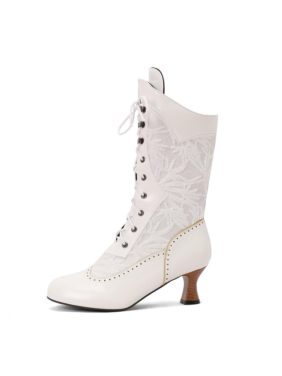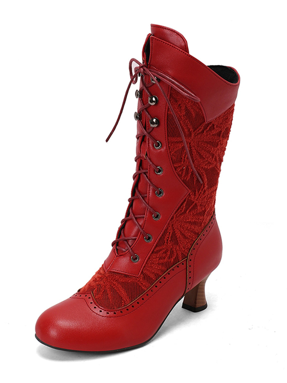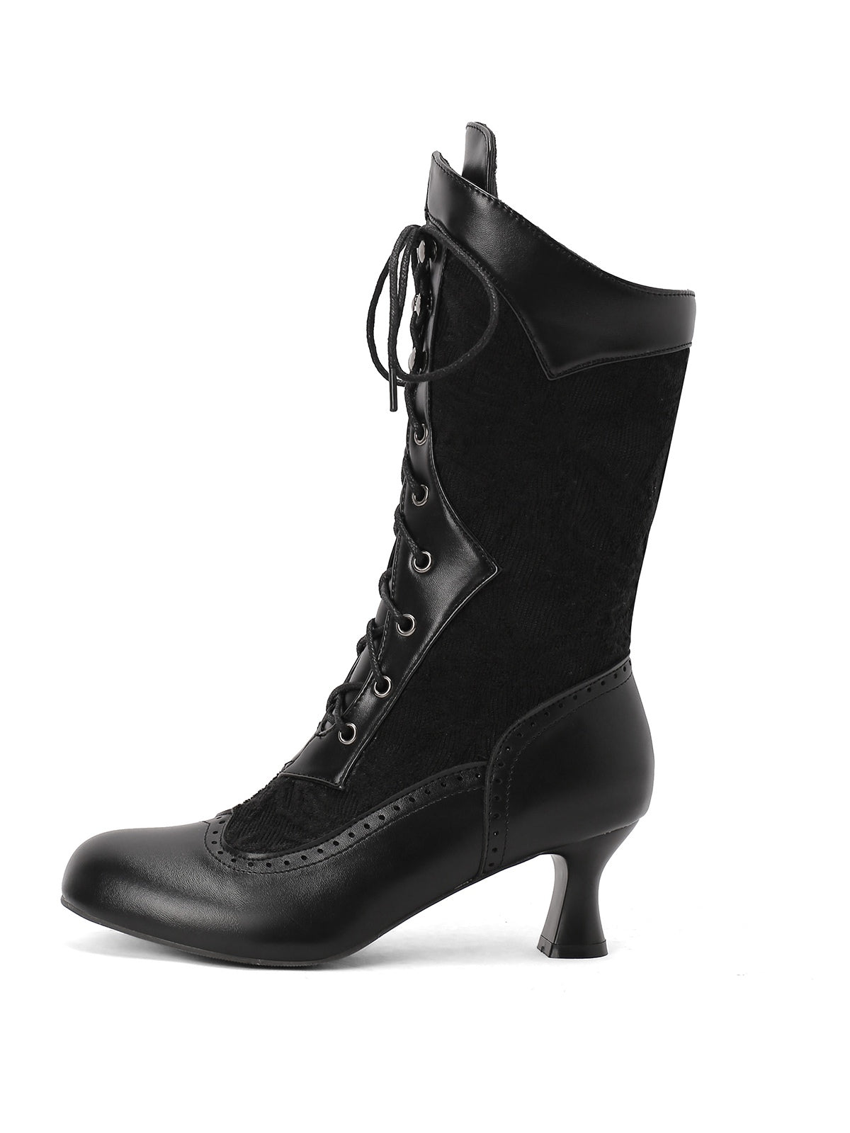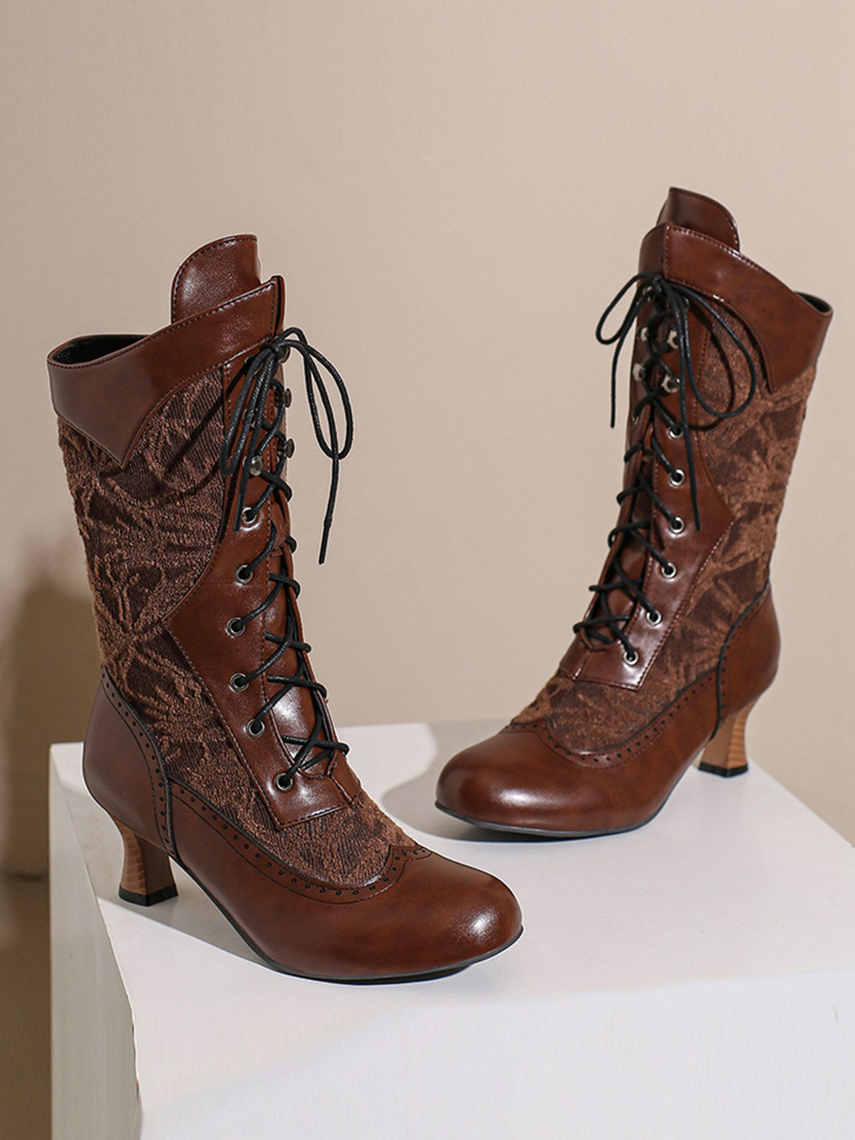 Lace Patchwork Lace-Up Calf-High Boots
