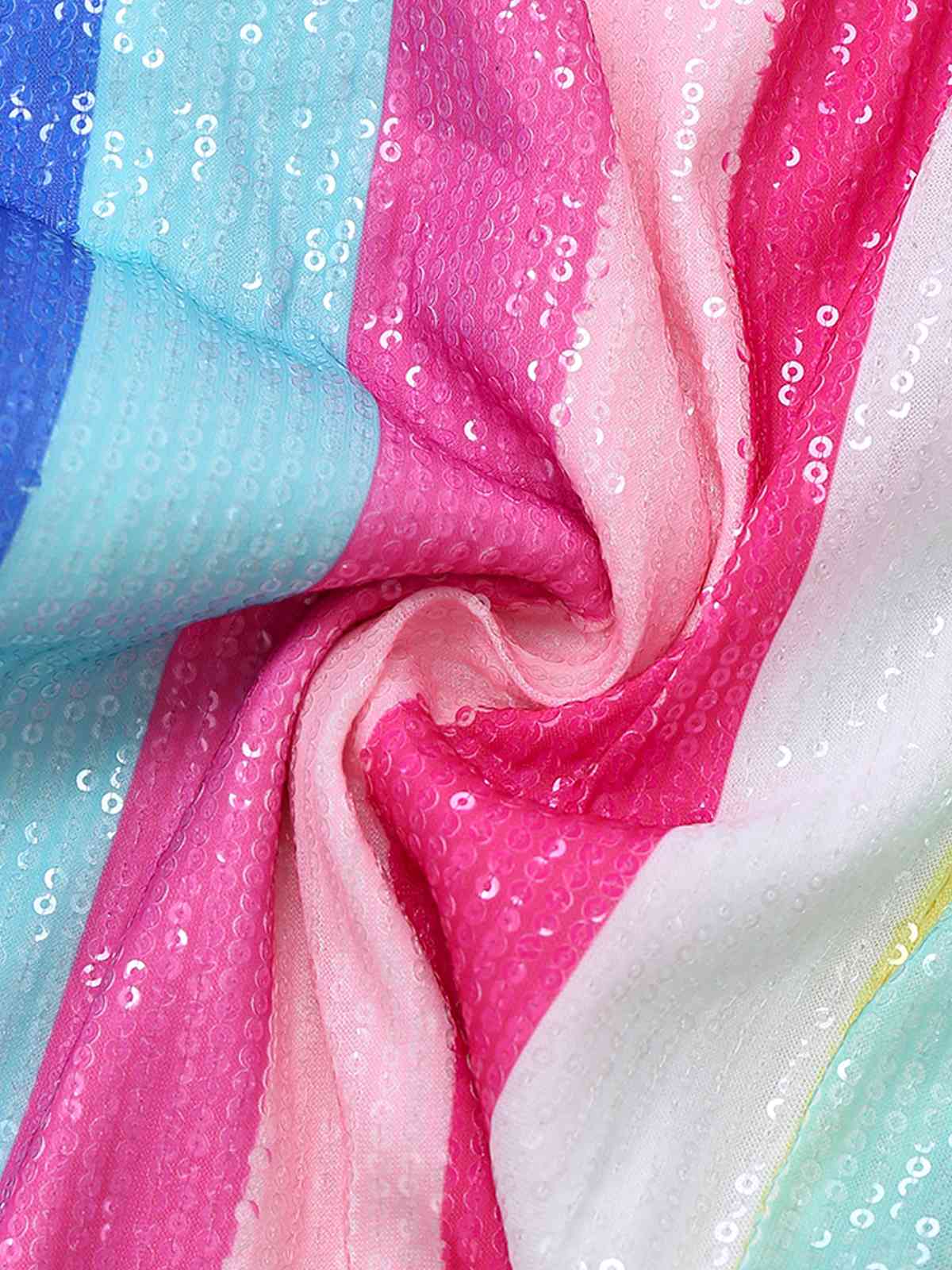 Multicolor 1960s V-Neck Sequined Vertical Striped Jumpsuit