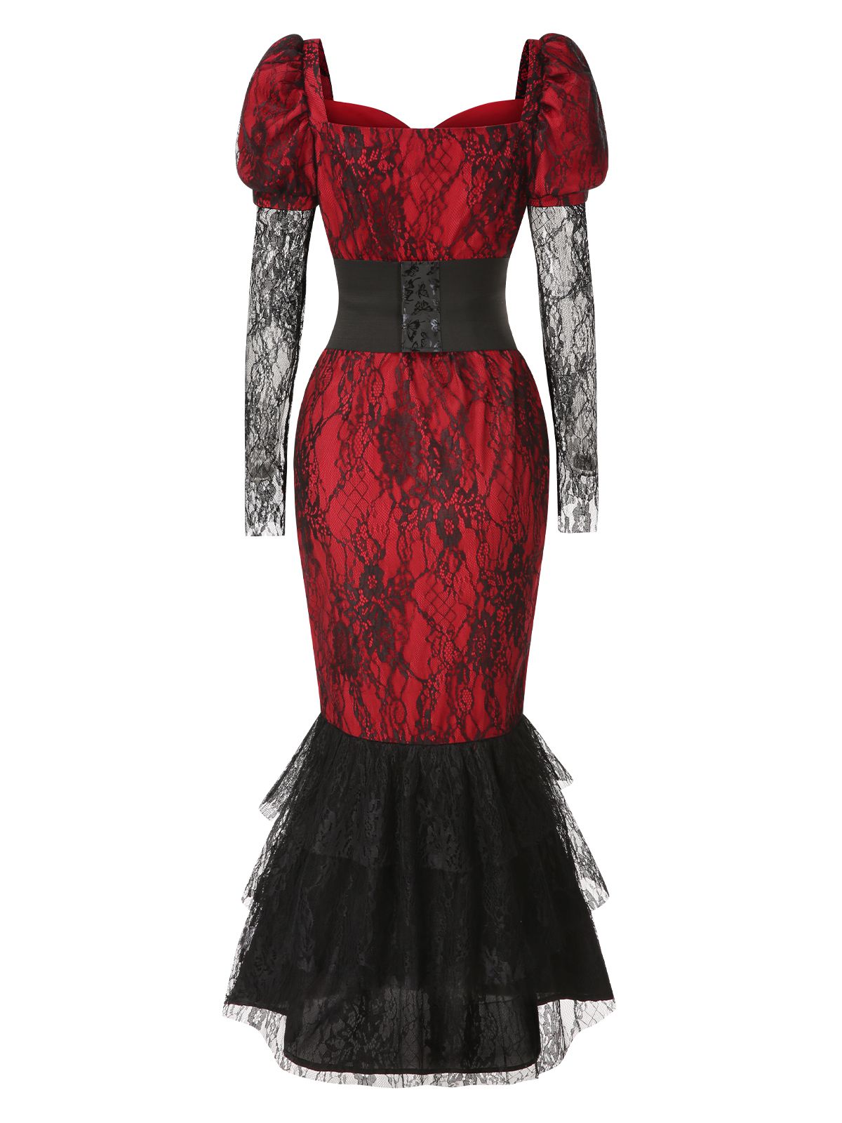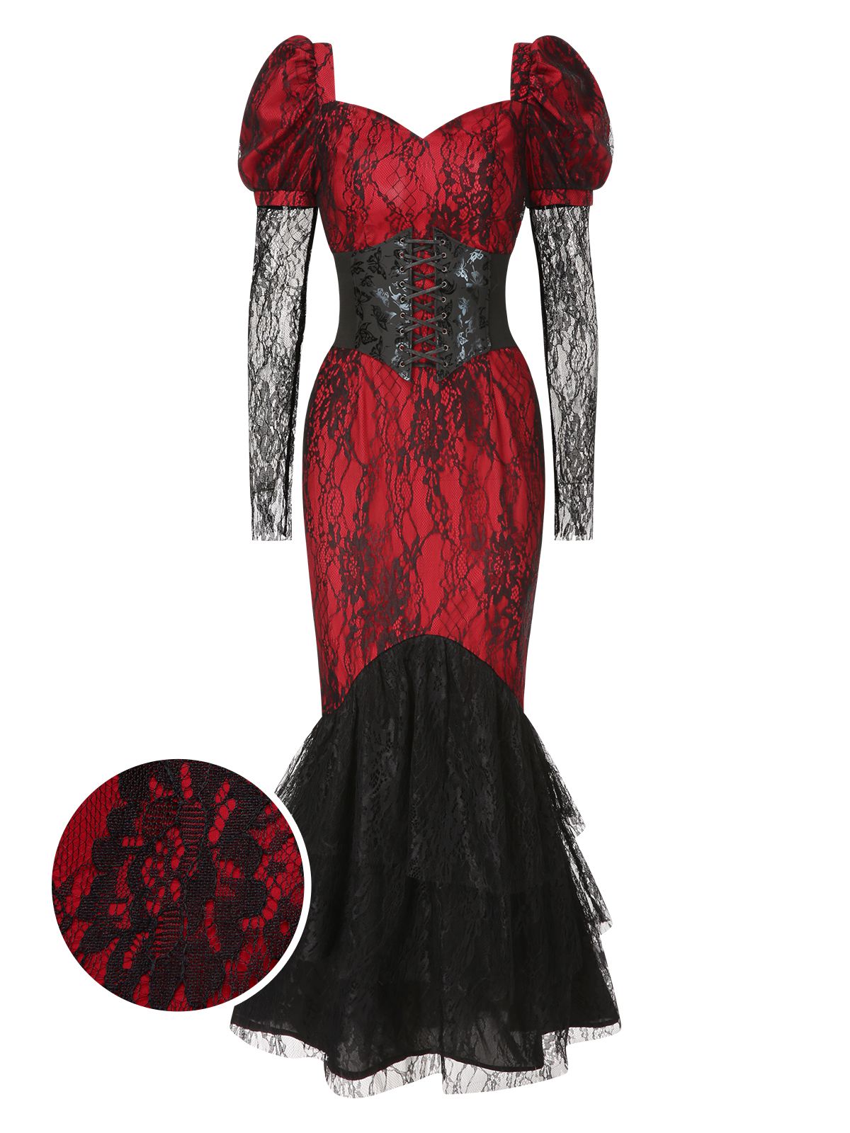 [Pre-Sale] 1930s Sweetheart Lace Puff Sleeve Sheer Fishtail Dress