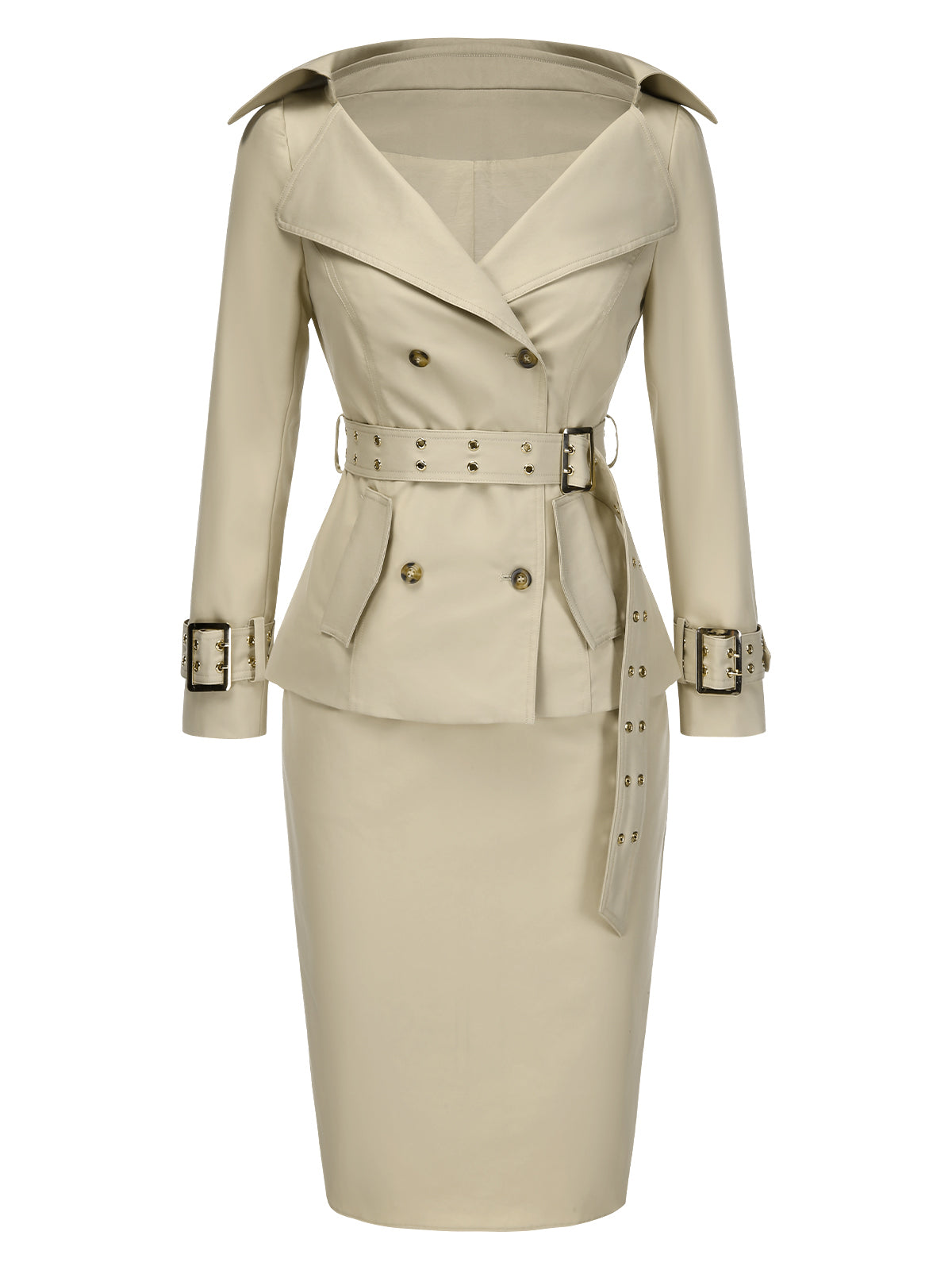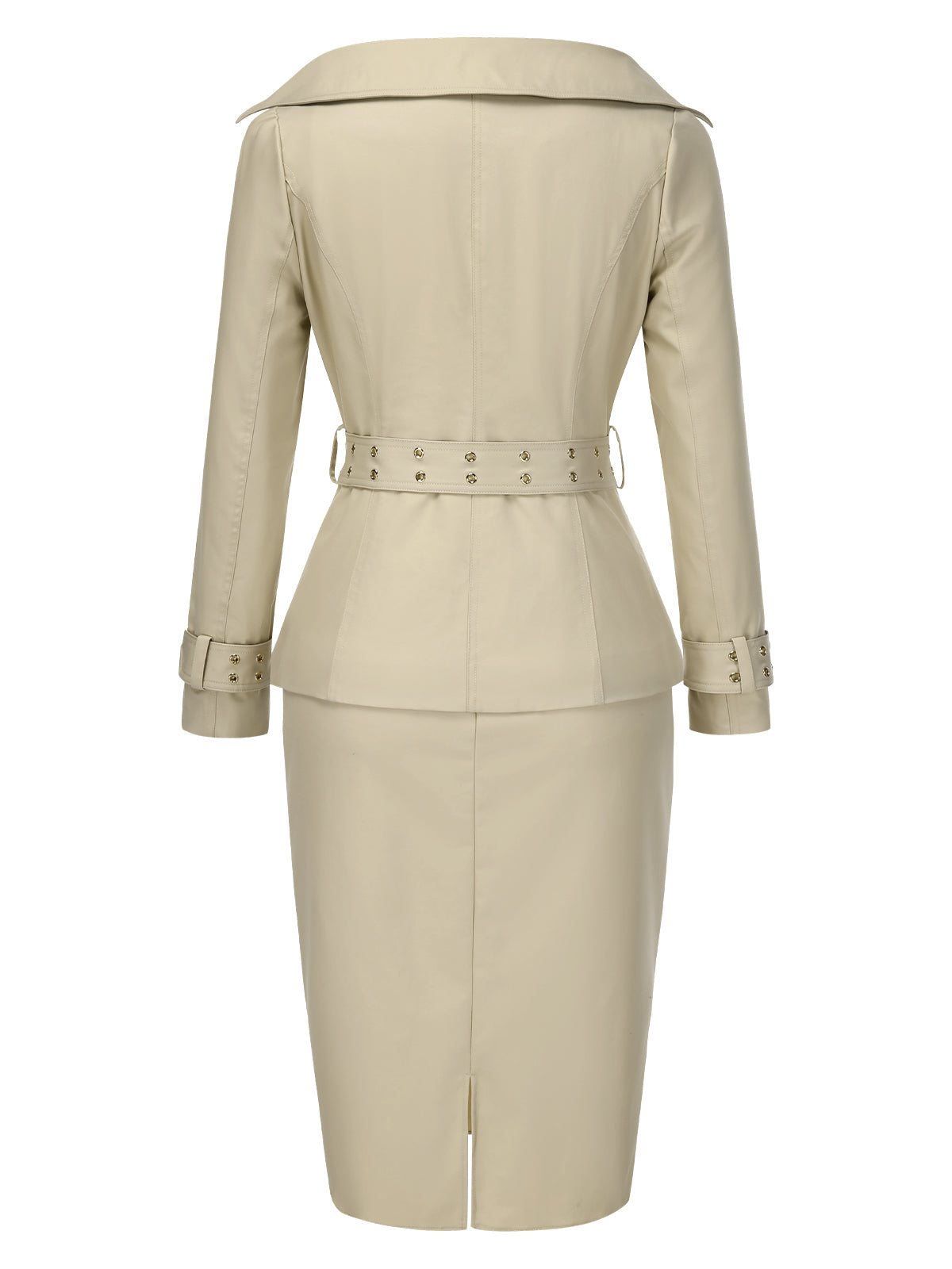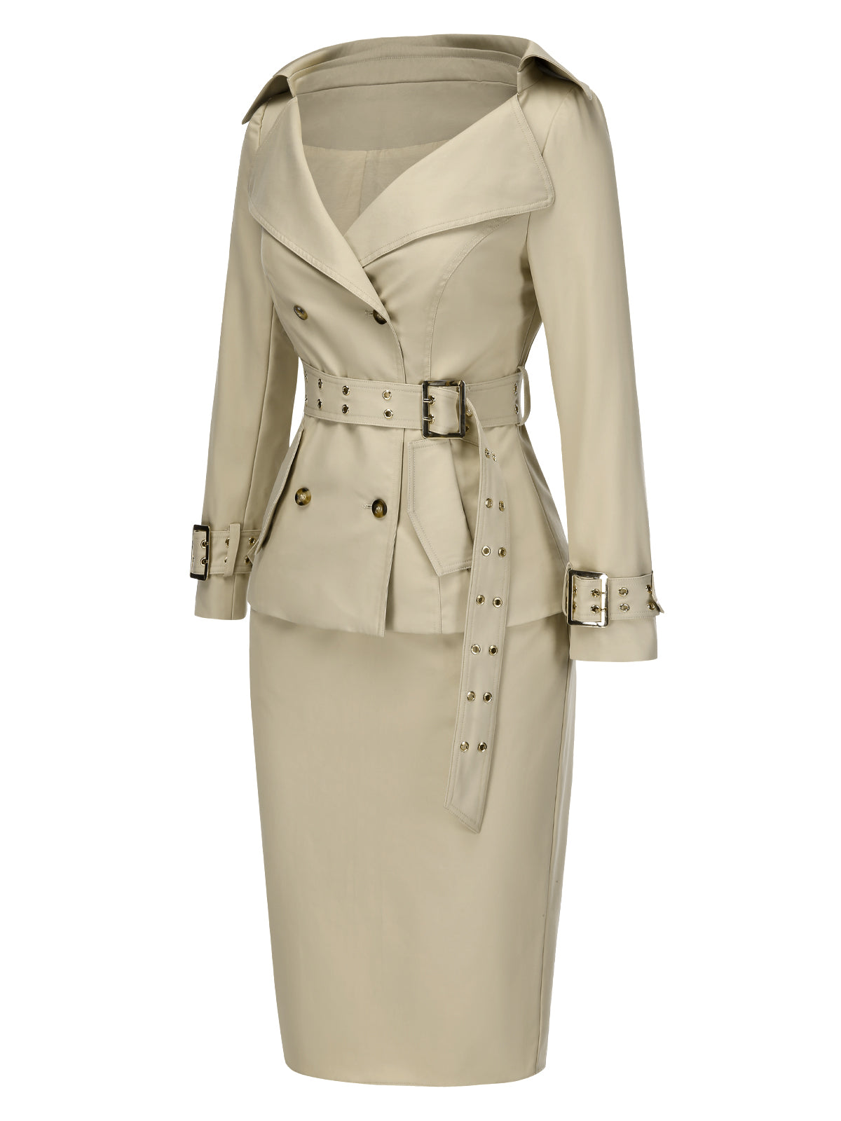[Pre-Sale] 2PCS Khaki 1980s Lapel Belted Jacket & Pencil Skirt