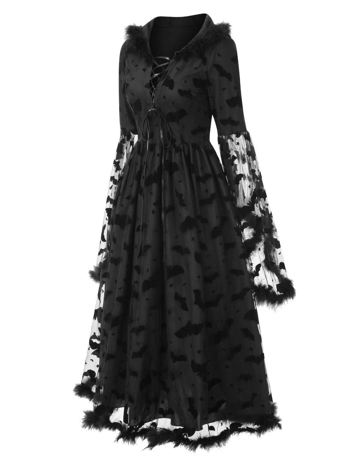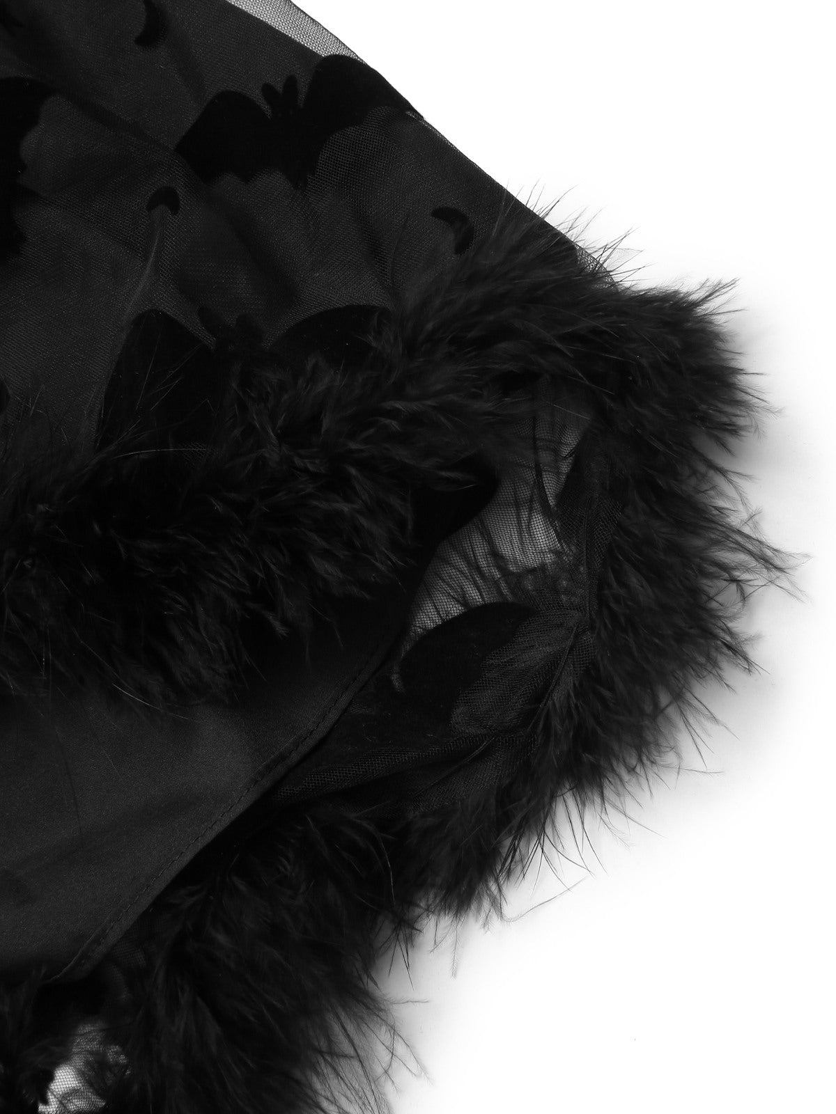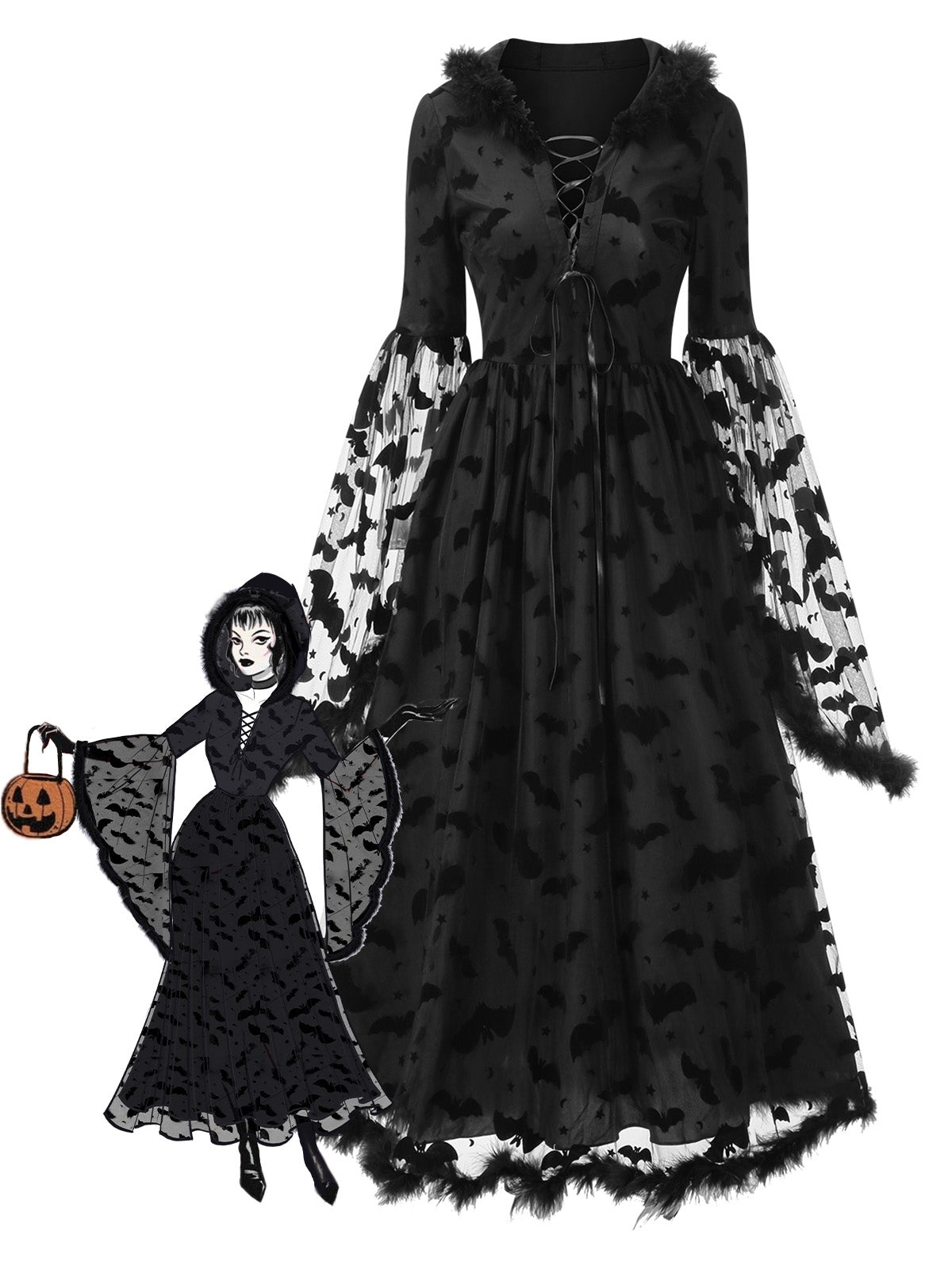 [Pre-Sale] Black 1940s Bat Mesh Raw Hem Witch Cape Dress