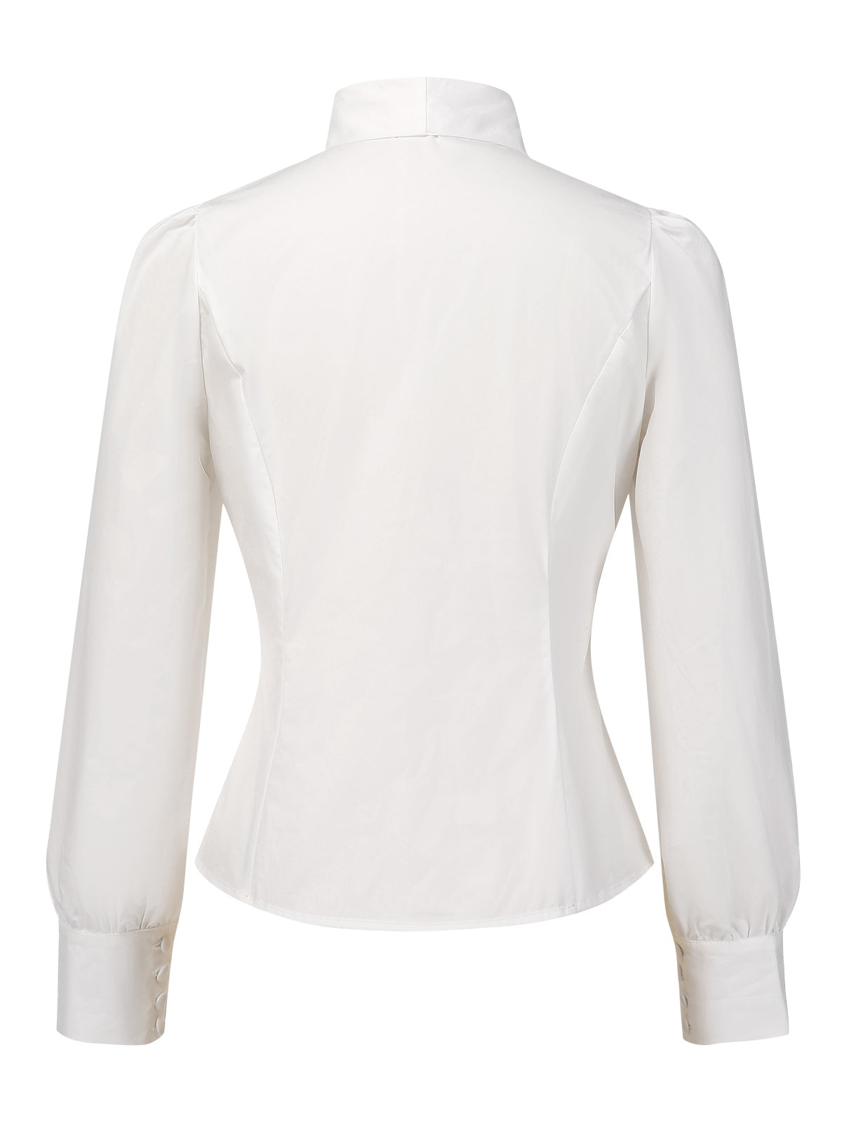 [Pre-Sale] White 1950s Solid Cotton Tie-Neck Bow Blouse