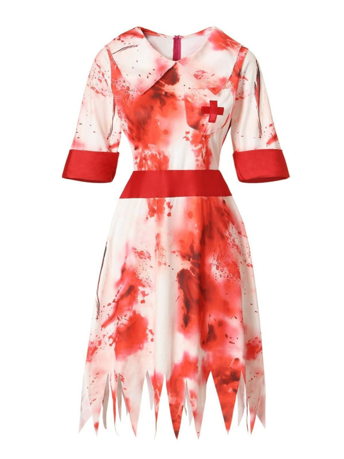 Red 1950s Halloween Zombie Nurse Blood Stains Dress