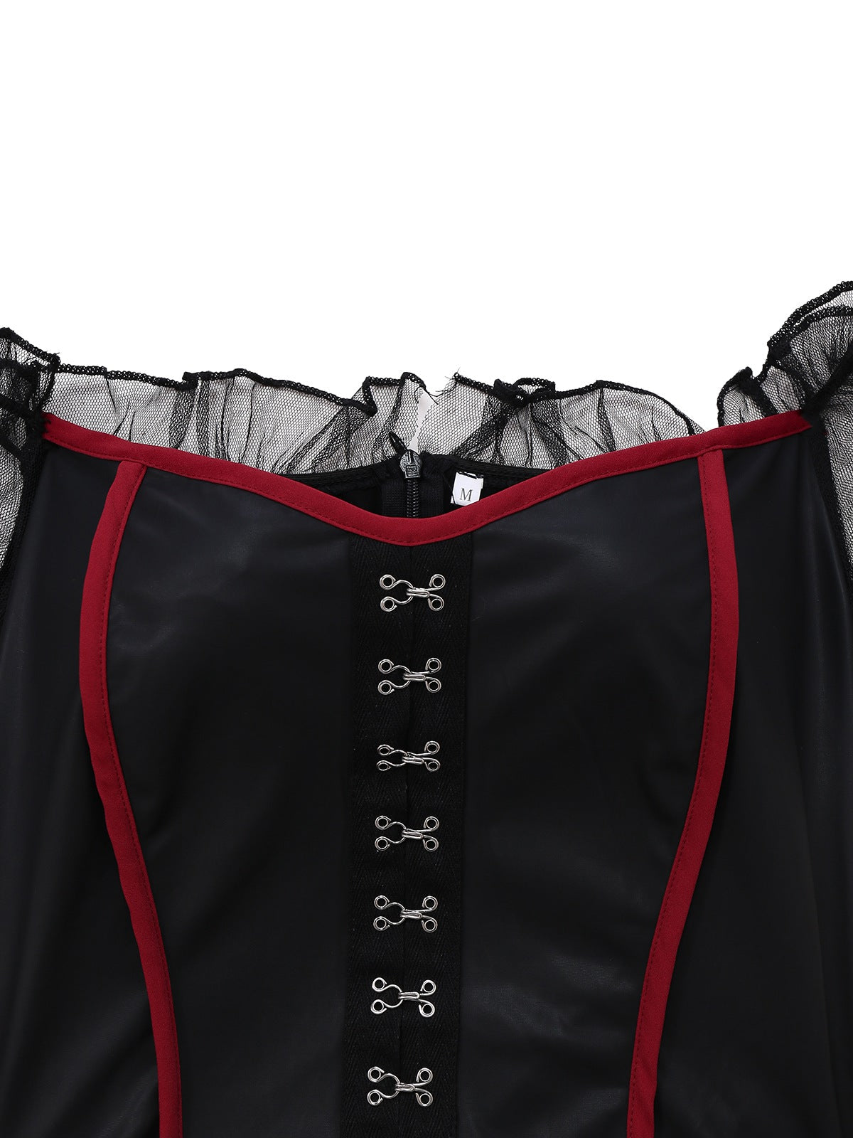 Red 1980s Halloween Mesh Red Riding Hood Dress & Embroidered Cape